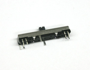 Il existe pourtant un moyen de transformer un potentiomètre à glissière avec cran d'arrêt central en un potentiomètre à glissière sans cran d'arrêt central. Pour cela, ouvrir le potentiomètre à glissière avec cran d'arrêt central, à l'aide d'une pince à bec et d'un petit tournevis plat. Retirer les éléments composant le potentiomètre, sans rien perdre, et en voyant bien comment tout est monté.