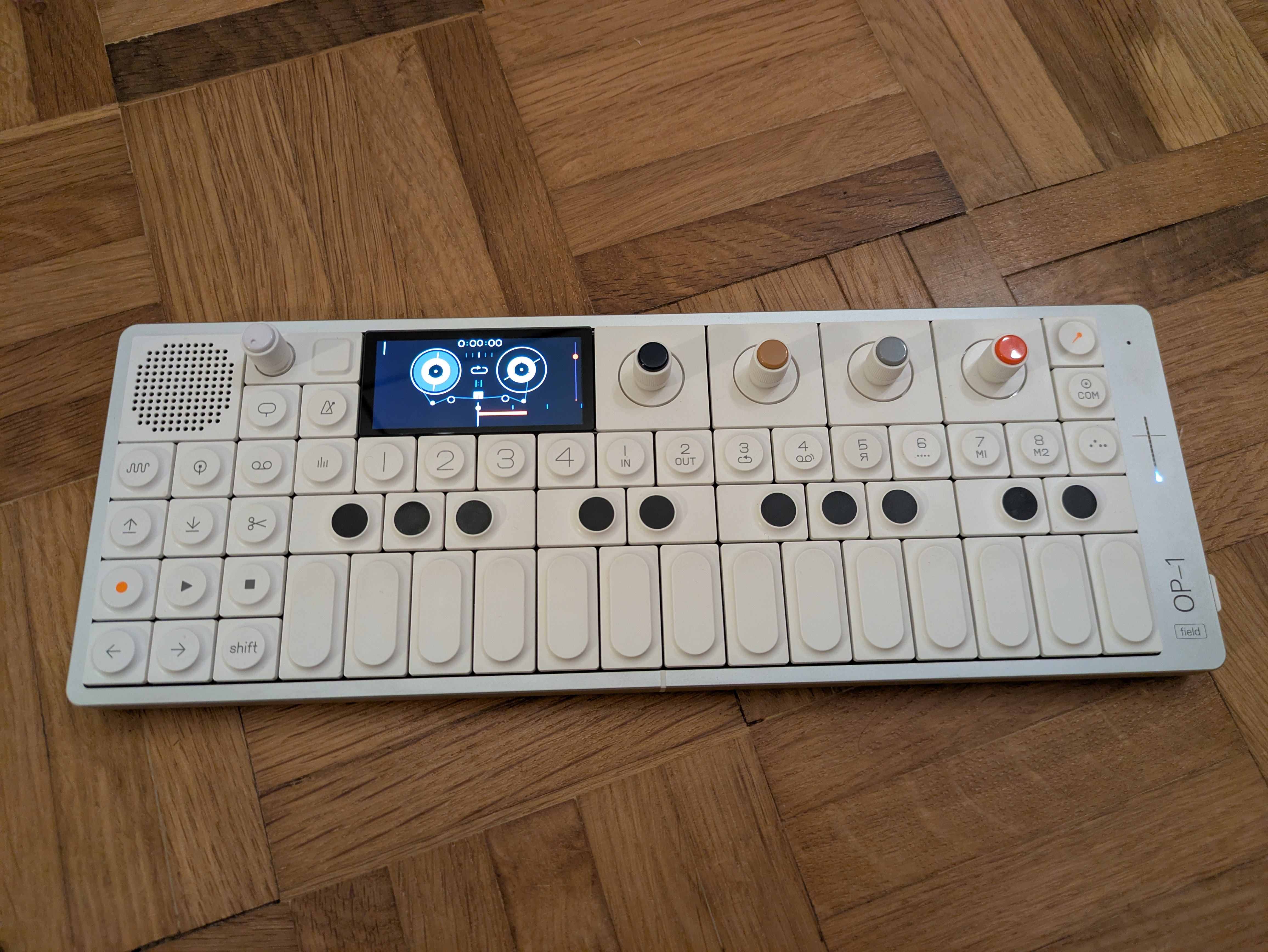 Teenage Engineering OP1 Field en excellent état, proche du neuf, avec Decksaver neuf, et étui Analog Cases en bon état mais qui présente des marques d'utilisation. Packaging d'origine également fourni.