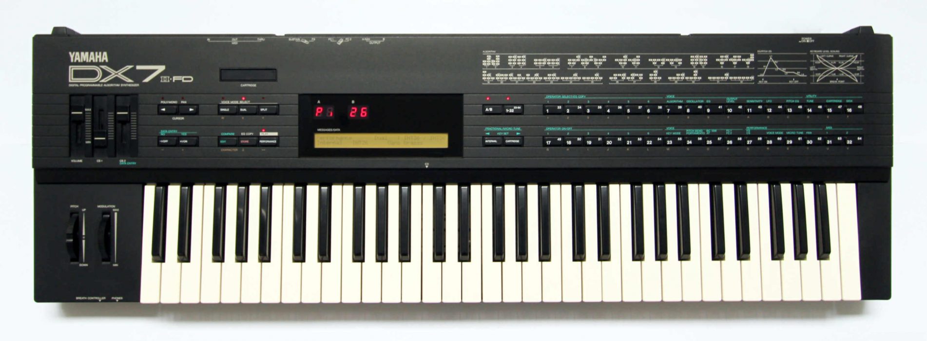 synthé à synthèse FM de 1987 YAMAHA DX7 II FD entièrement révisé avec cartouche et pédale6 oscillateurs, 8 enveloppes, 1 LFO, polyphonie 16voies multi timbre 2,256