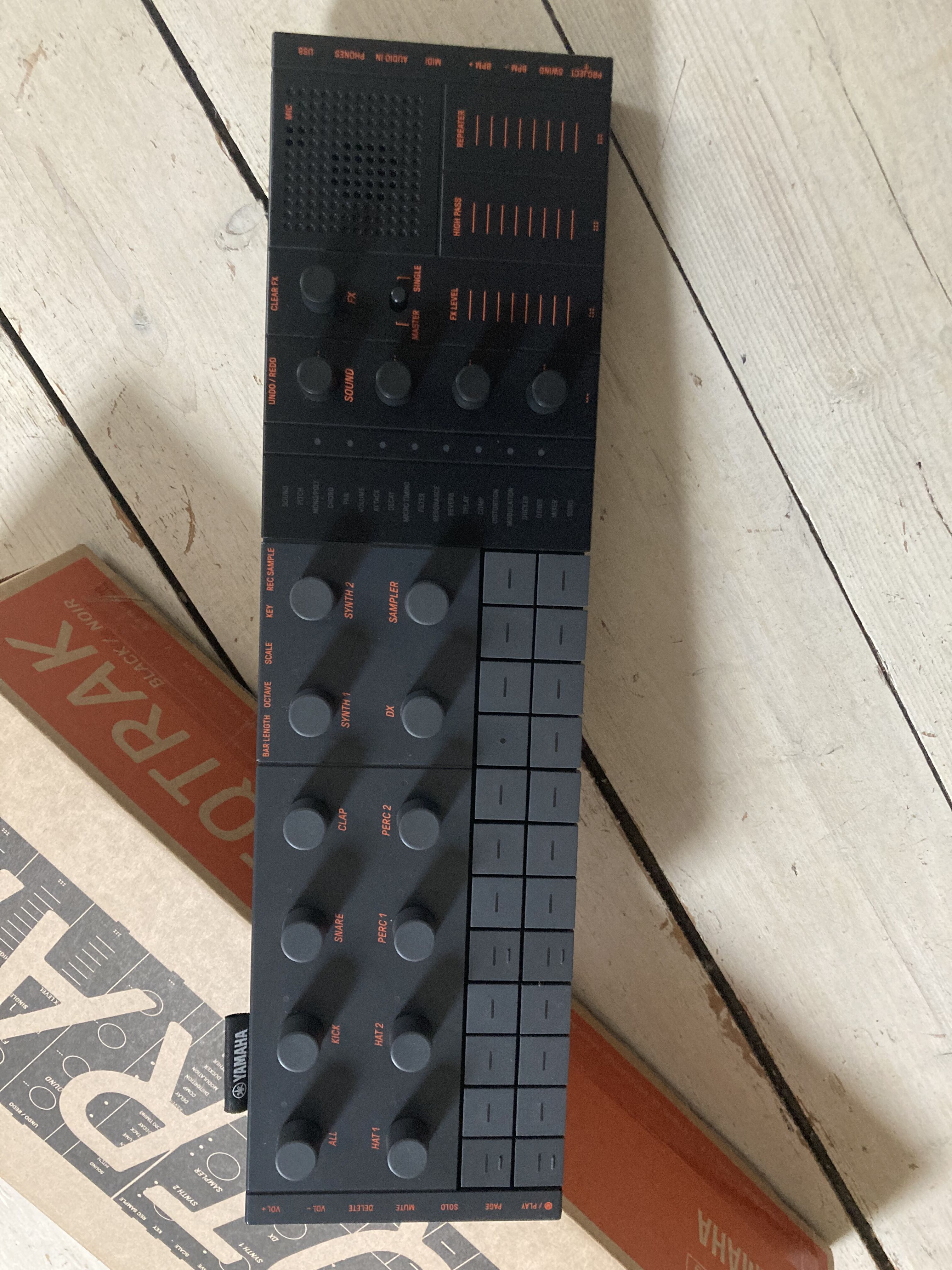 Je vends cette petite groovebox portable Yamaha Seqtrak dans un état proche du neuf, les sons sont top et workflow très fluide avec l'appli que je ne peux malheureusement pas installer sur mon ordi (OS trop vieux). On peut s'en servir sans aussi bien sûr. Il y a une enceinte intégrée, beaucoup de sons, sequencer, arpegiateur 11 tracks (7 drums + 4 synth/sampler), arp, moteur de son Yamaha DX7. Une fonction VJing.Je la vends avec ces accessoires d'origine (cable midi IN/OUT + USB C) et son carton nickel.