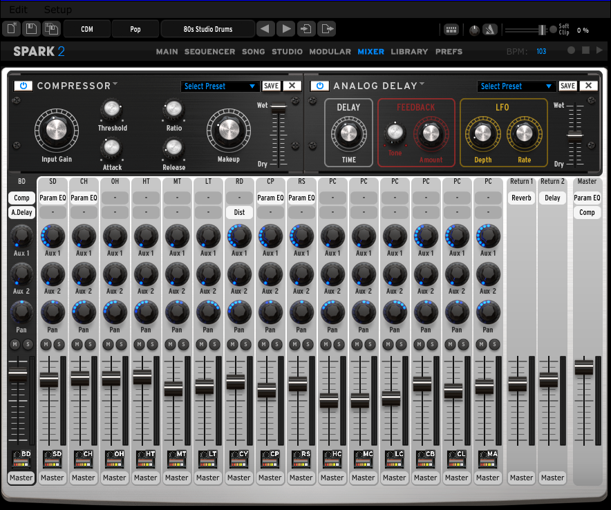 Spark 2 peut être utilisé en standalone ou comme un plug-in VST, AU et AAX 32 et 64-bit sur mac OS X et Windows (16 sorties audio peuvent être routées et assignées dans l’hôte).