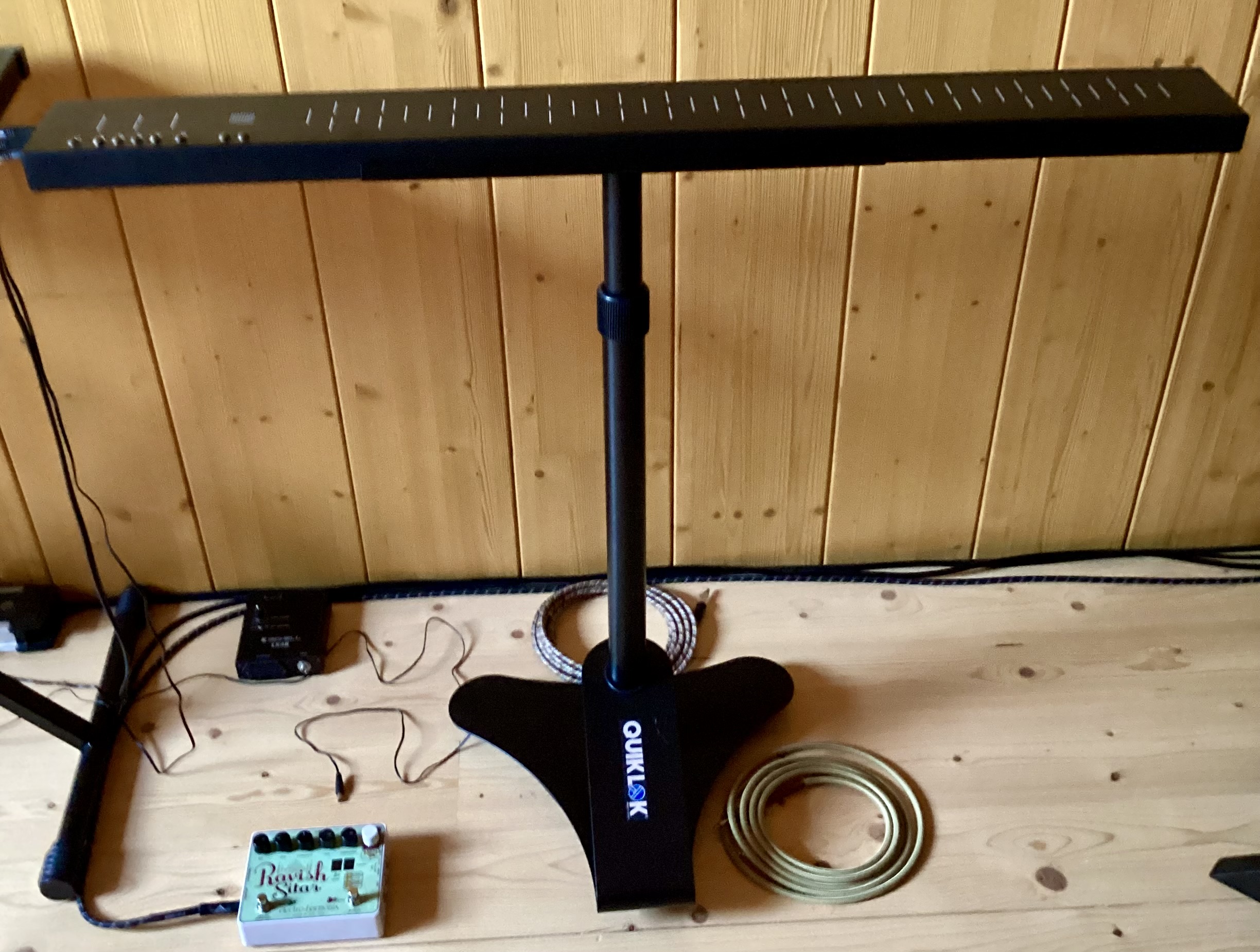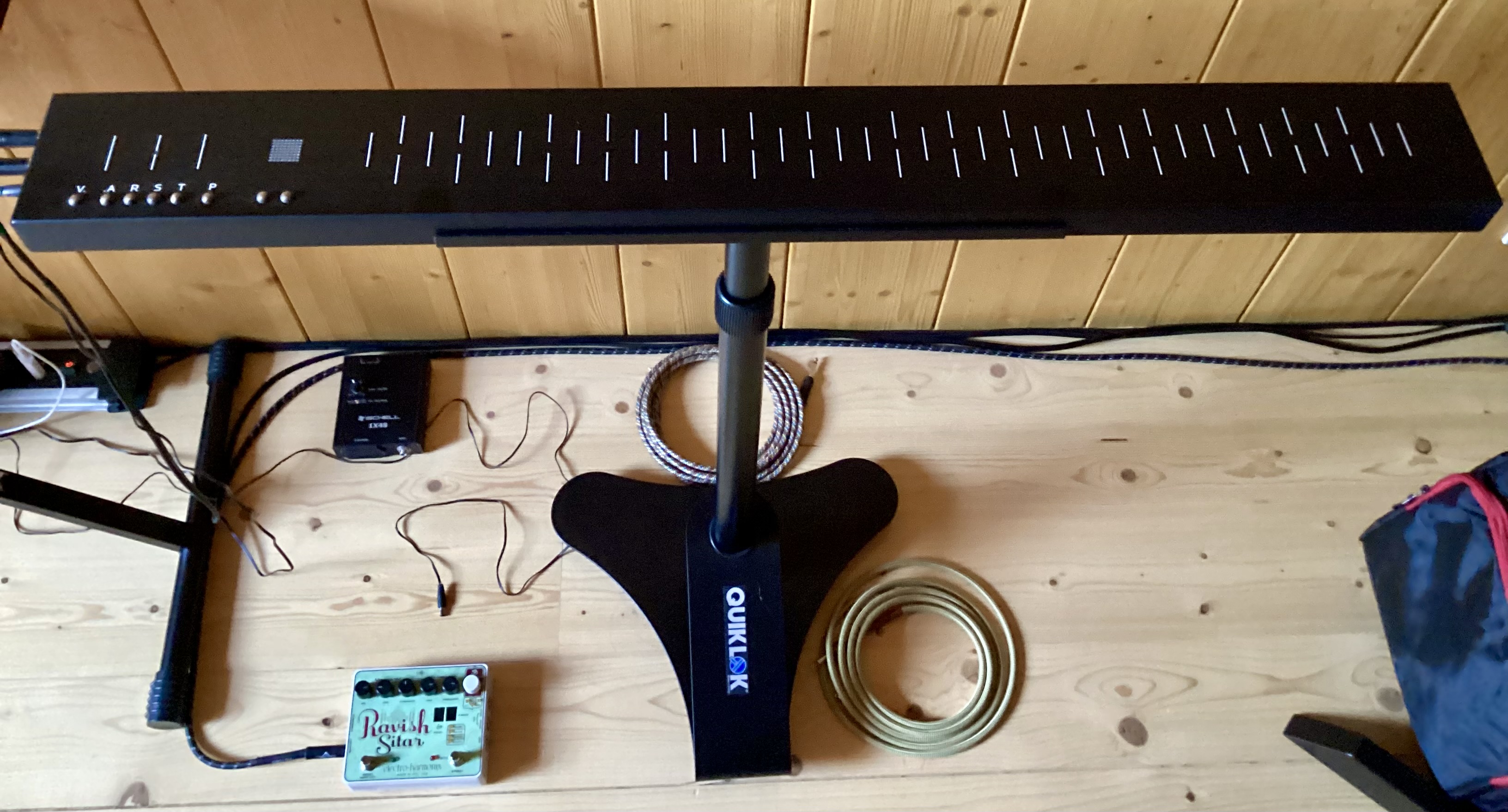 Magnifique instrument fonctionnant avec 2 aimants, des sons de Theremin, synthétiques, scies musicales, ambiances sonores variées…