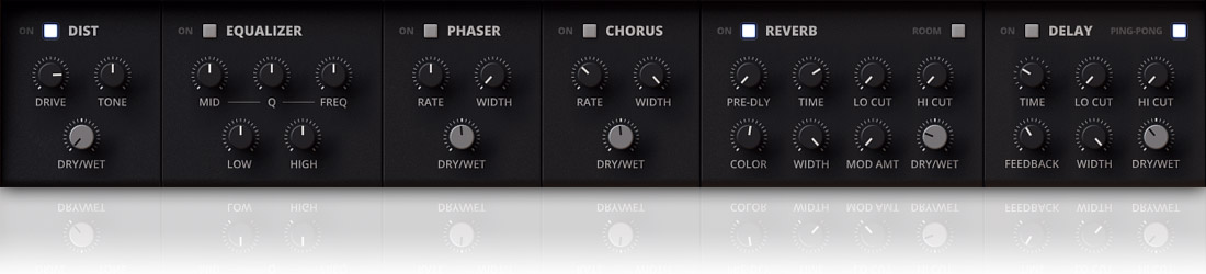 Une polyphonie de 12 voies, suréchantillonnage X8, section d'effets (Distortion, EQ, Phaser, Chorus, Reverb, Delay), compatible avec Maschine, Komplete Kontrol et les claviers S-Series.