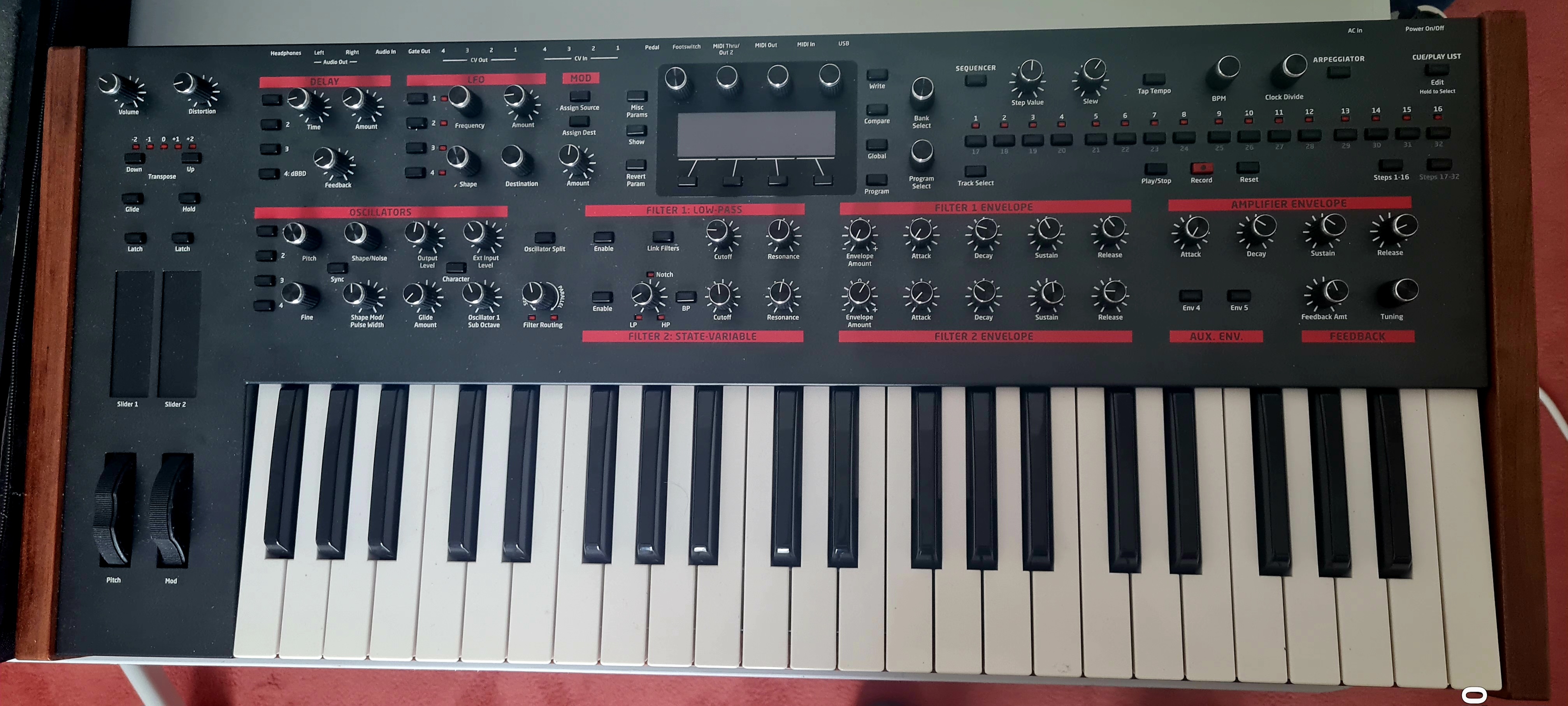 On ne le présente plus. Le mythique Pro 2. Bardé d'oscillos, de LFO, d'enveloppes. Un workflow de rêve...Une matrice de dingue, notamment (la plus évoluée de TOUS les Dave Smith). Et un double filtre redoutable.