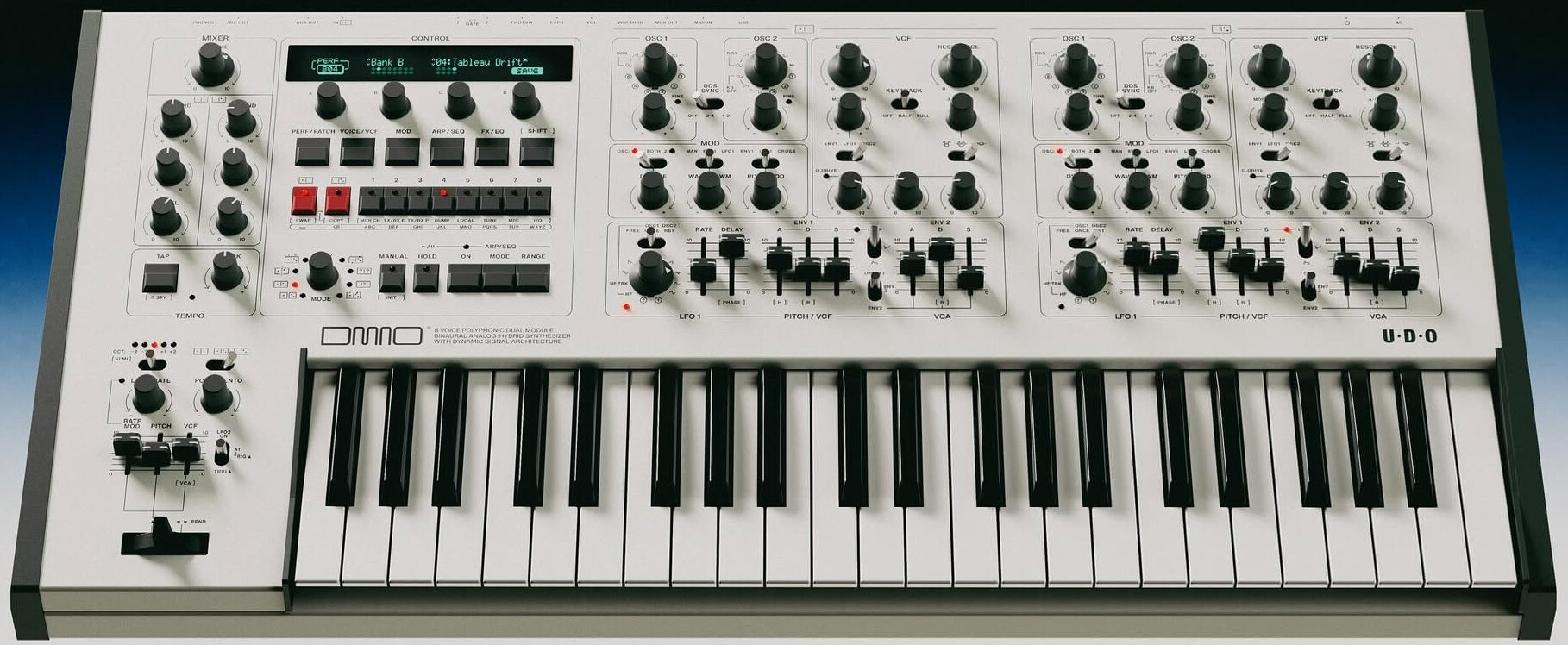 Le UDO Super Gemini est un synthé qui combine brillamment le meilleur de l'analogique et du numérique. Avec ses 20 voix de polyphonie et son architecture hybride, il offre un son à la fois riche et moderne, tout en gardant ce grain chaleureux que j'adore dans les synthés type "vintage".