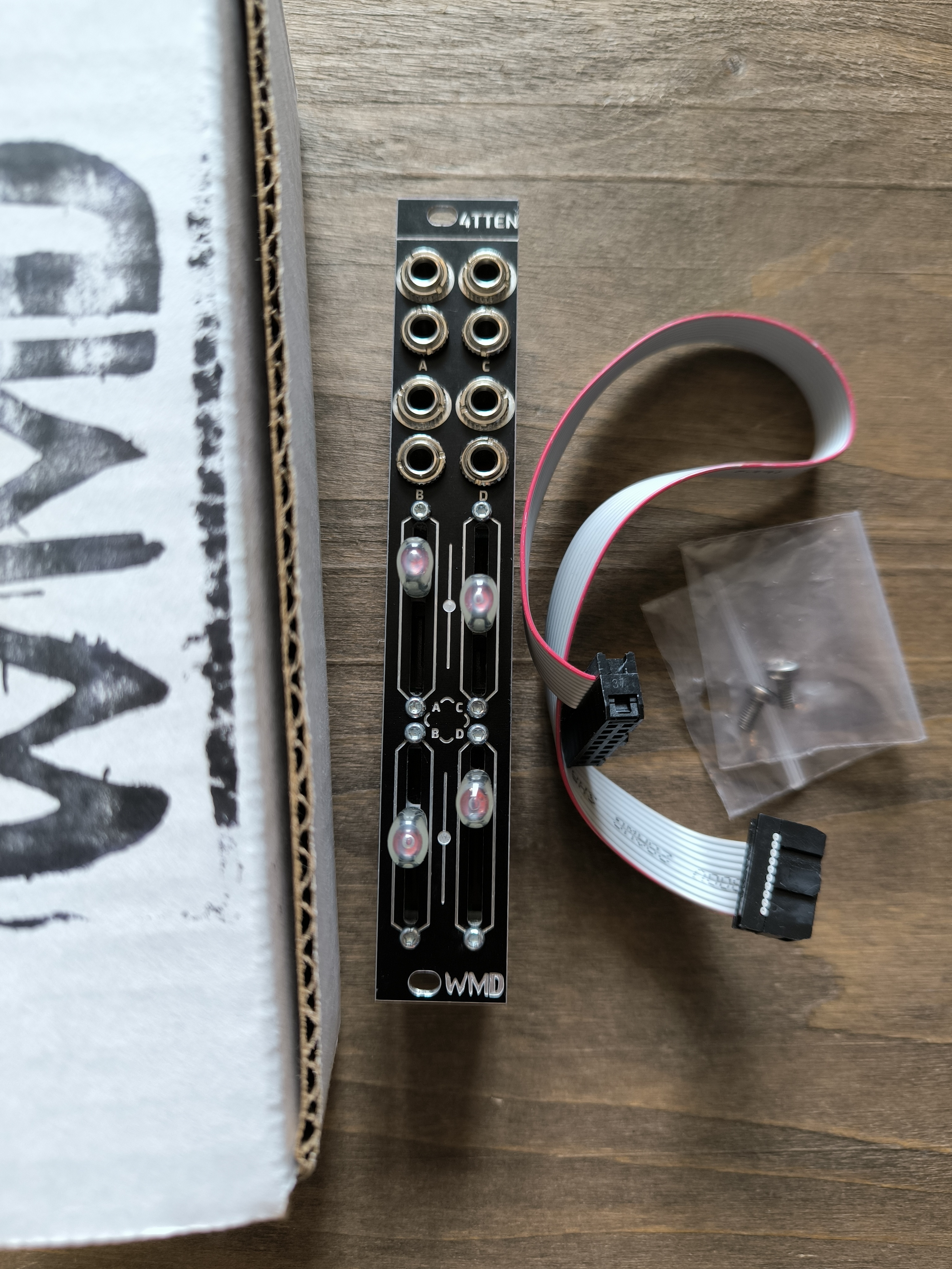 Module Eurorack 4tten de WMD. quatre pistes d'atténuation ou offset 0V à +5V en très bon état. vendu dans sa boîte avec nappe d'alimentation + vis. envoi possible par Mondial Relay.