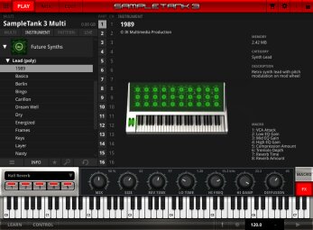 Si vous avez besoin de compléter la collection de synthés de SampleTank 3 pour vos productions EDM, techno, garage, house, trance et dubstep, mais aussi pour la pop, le hip hop et le rock, IK Multimedia vous propose Future Synths, un pack de 150 instruments, 150 patterns MIDI, 4 multis et 28 multis MIDI. Les instruments sont organisés en 6 catégories, vous disposez ainsi de 40 leads, 40 basses, 25 pads atmosphériques, 30 plucks et 15 effets.