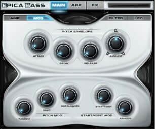 - Enveloppe de pitch ADR avec quantité, pitch aléatoire, pitch drift, portamento, sample start point et random sample start point