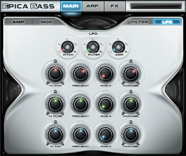 - 3 LFO avec 5 formes d’ondes, quantité, fréquence, fade in, etc.