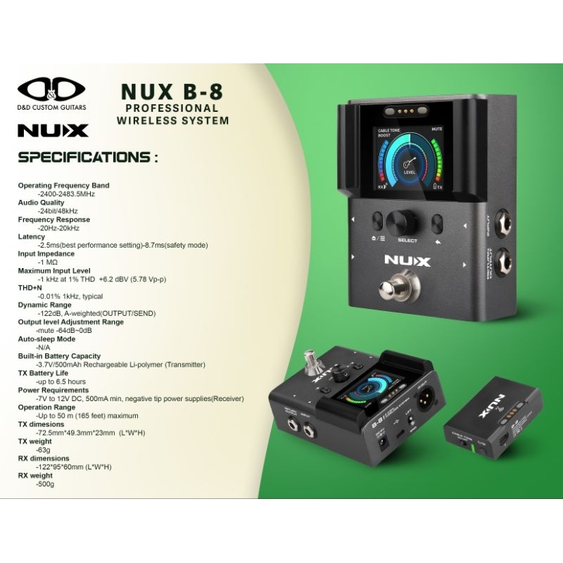 Système sans fil Nux B-8 wireless bass/guitar