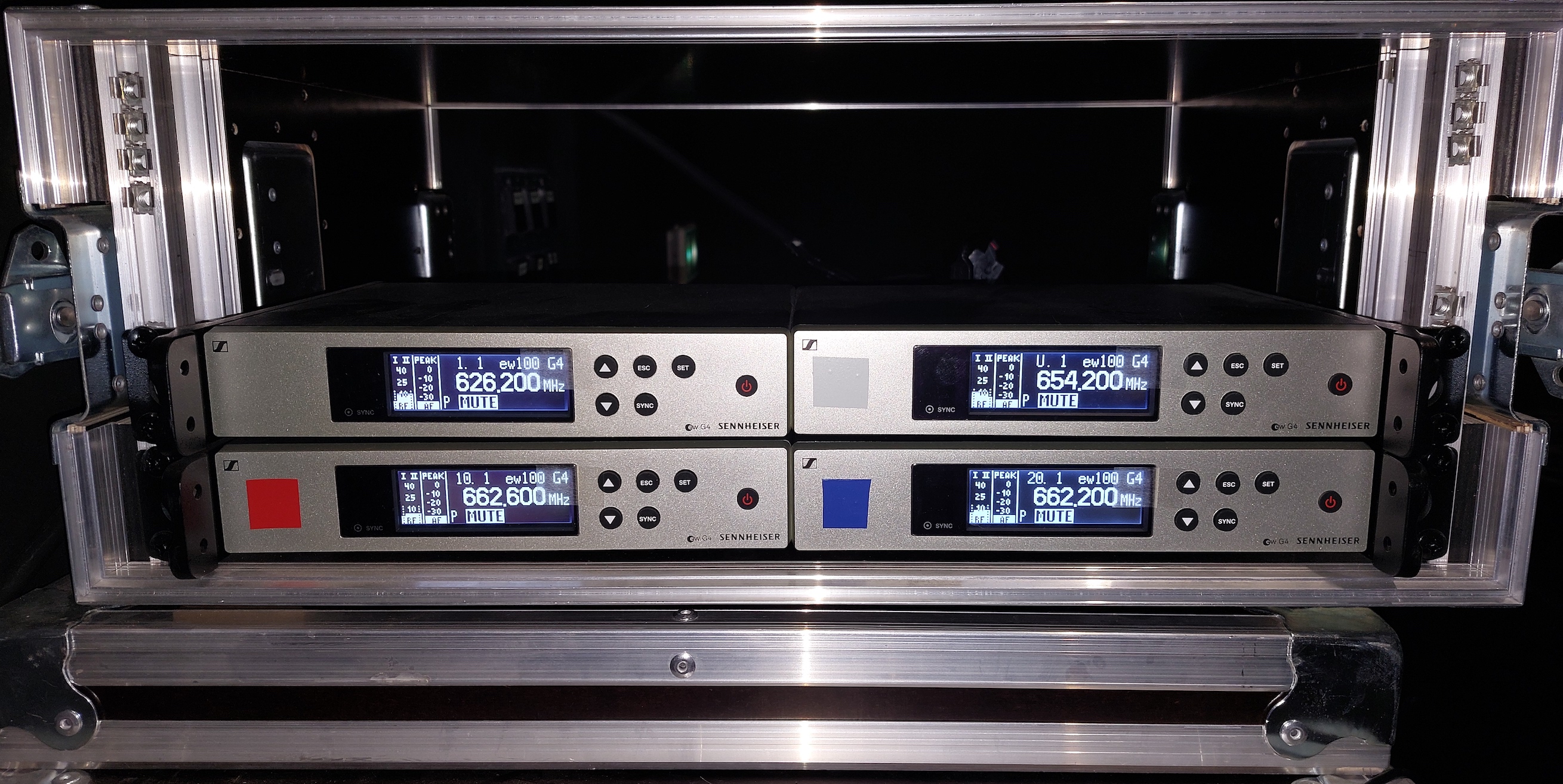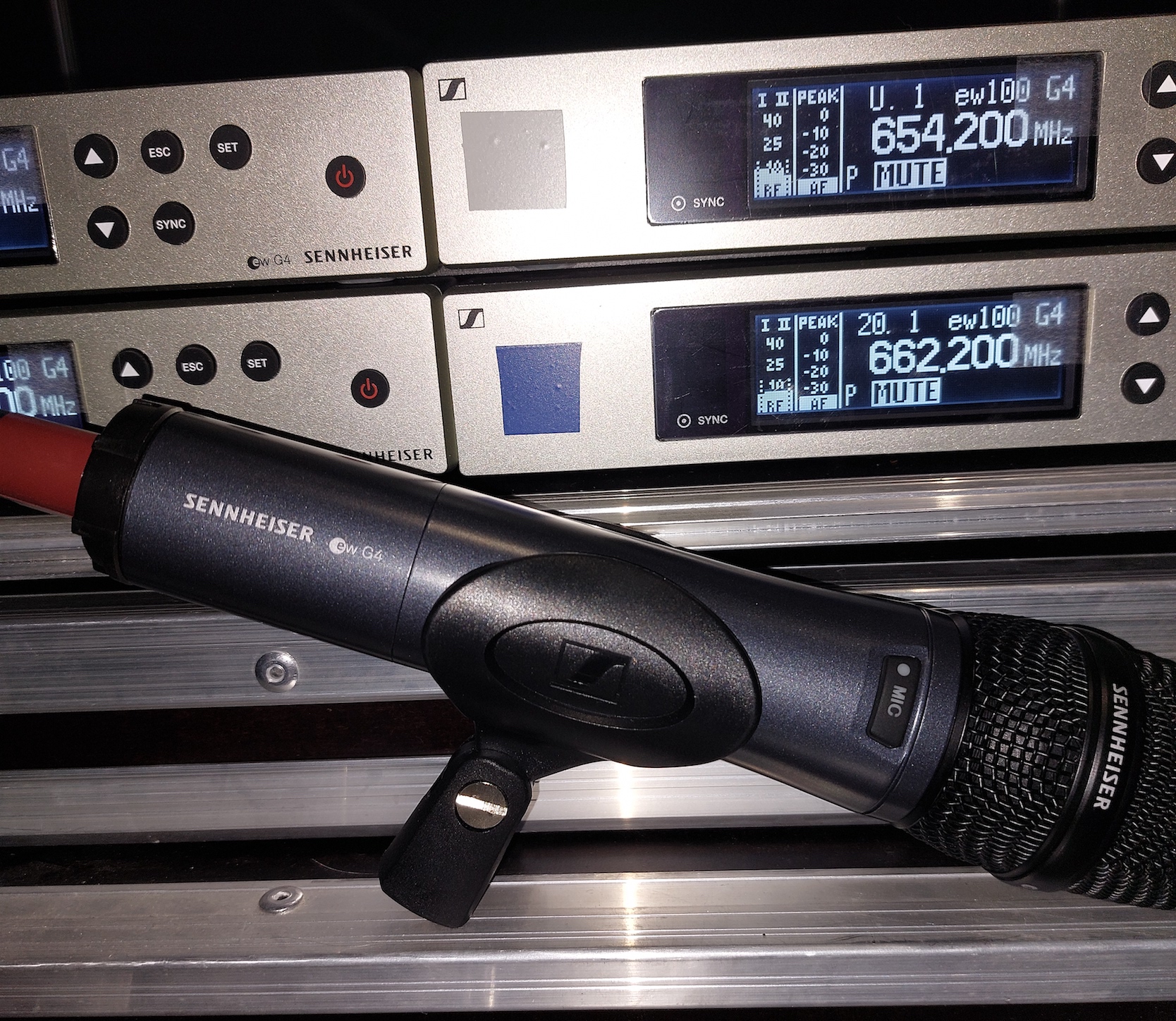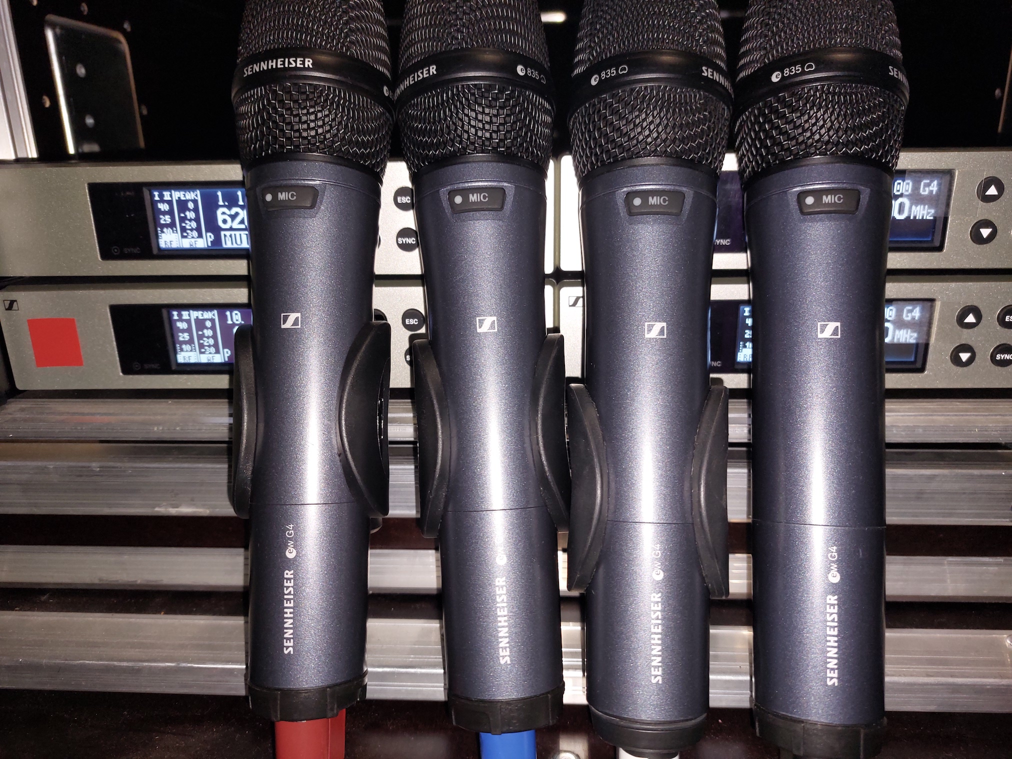 Vends 4 micros HF Sennheiser ew G4 E835 + récepteur en fly case.