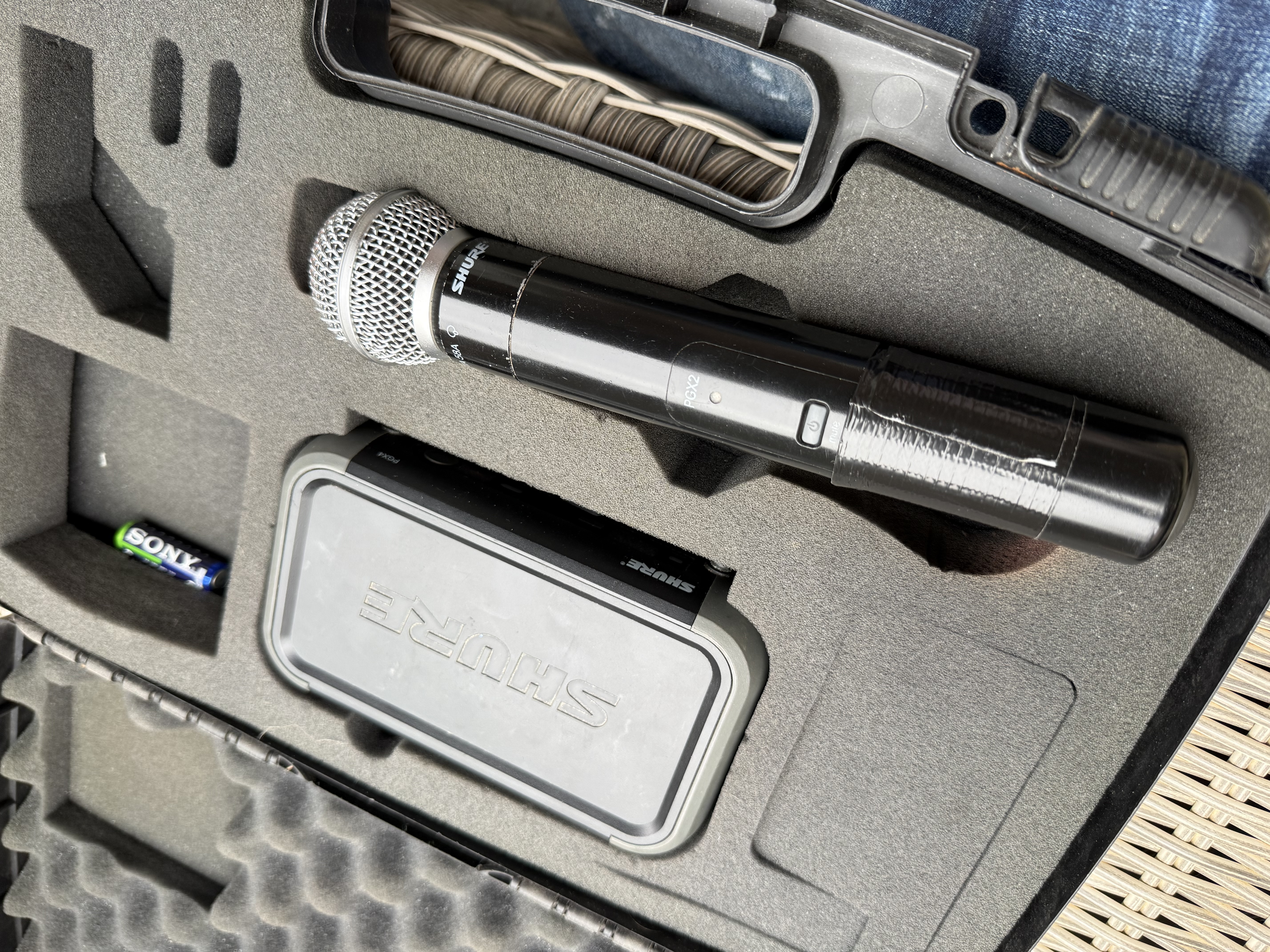 Shure Beta 58A + PGX4 dans sa mallette d’origine en parfait état de marche.L’alimentation du PGX4 est manquante.