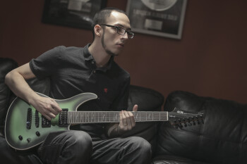 Au bout du compte il faut juste se servir de ses oreilles et s’assurer que tout ce que l’enregistrement inclut est absolument à 100 pour cent parfait pour chaque note jouée. Et ça implique simplement un grand souci du détail, beaucoup de patience, et beaucoup de bonnes techniques d’écoute : savoir quand certaines notes sont trop basses, quand d’autres sont trop hautes, et ne rien laisser passer. On passe beaucoup de temps à s’assurer que la guitare est impeccable. Il y a des fois où on doit expliquer : « Tu vas jouer ta guitare d’une certaine façon sur scène, et d’une autre quand tu joues assis, mais il y a une certaine façon de jouer quand tu es en studio si tu veux que tels accords et telles parties soient en harmonie. »