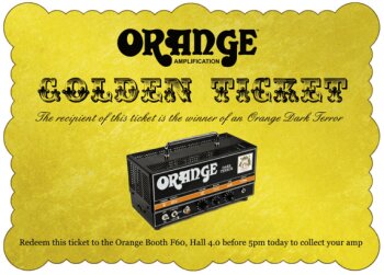 Pour fêter 45 ans de bons et loyaux services aux musiciens, Orange Amps offrira sur son stand F60 Hall 4.0 du Musikmesse des sacs avec des cadeaux. Chaque jour, un de ces sacs contiendra un ticket gagnant qu’il vous faudra ramener au stand avant 17h le même jour pour pouvoir repartir avec une tête Dark Terror. 4 jours de salon, 4 sacs, 4 chances de gagner une Orange Dark Terror.