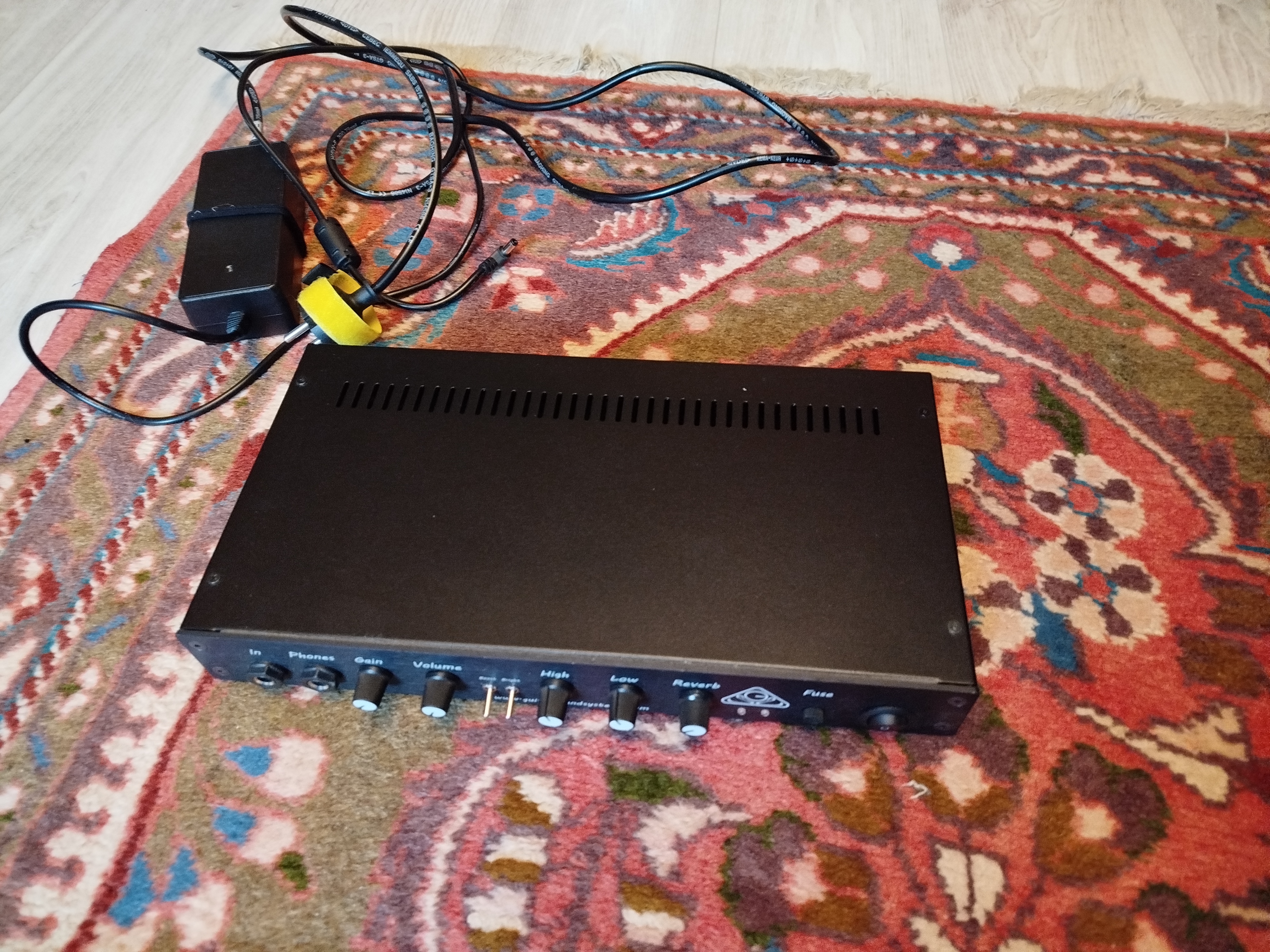 Un connecteur jack 6,35mm en face avant pour la sortie casque. Marche/arrêt. Un bouton de volume Un bouton de réglage de gain Réglages de tonalité grave et aigu Bouton de réglage Reverb Un commutateur "Boost" Un commutateur "Bright" Chauffage de la lampe de pré-amplification temporisé (automatique)