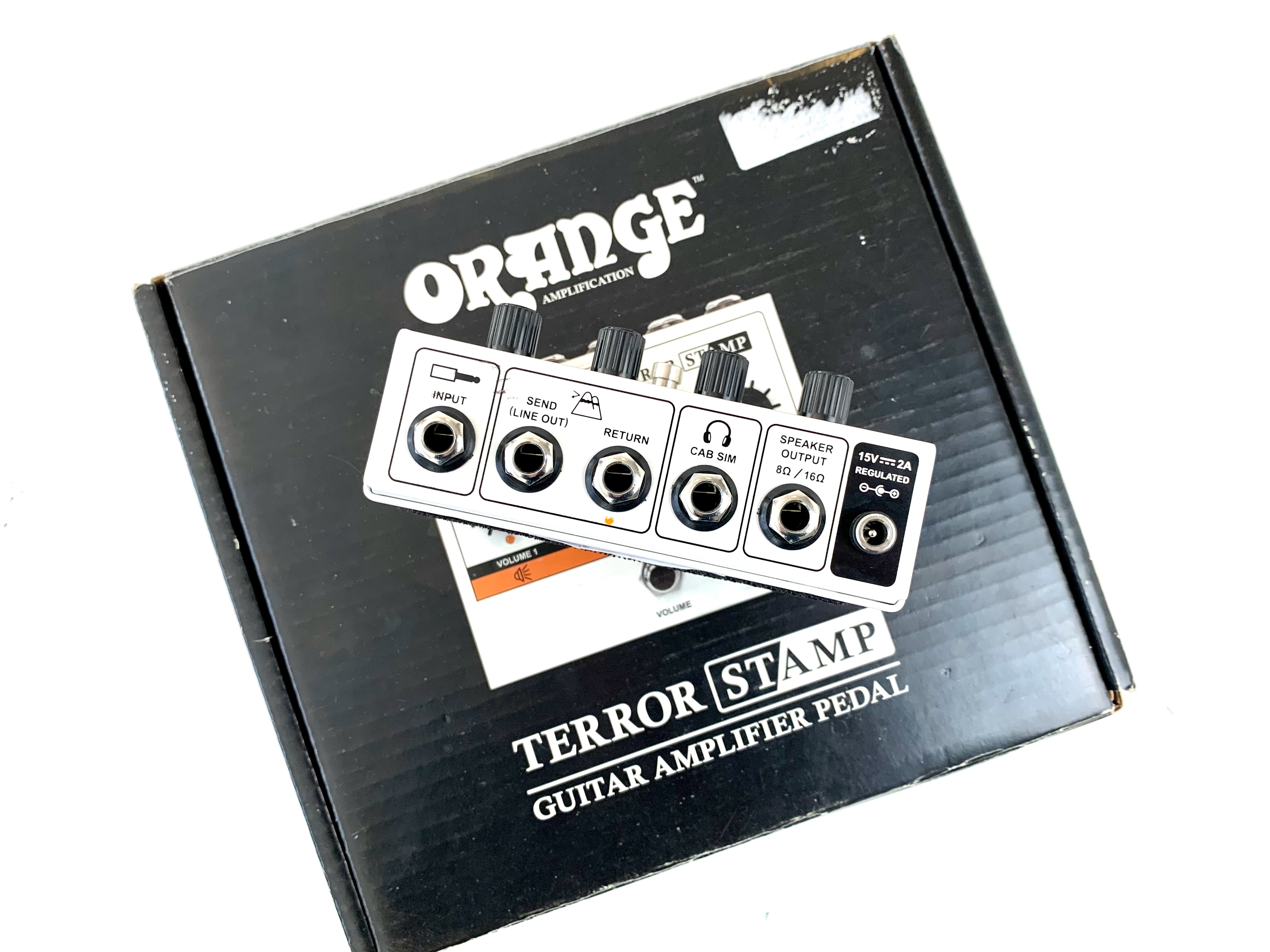Le Orange Terror Stamp est une mini tête d’ampli au format pédale conçue par Orange Amplification, reprenant le caractère sonore des célèbres Tiny/Dual Terror dans un format très compact. Elle délivre environ 20 watts grâce à un étage de puissance hybride (préampli analogique et power amp classe AB) et propose des réglages Gain, Shape, Volume et Master, permettant d’aller d’un crunch britannique à une saturation plus épaisse typique de la marque. La pédale dispose aussi d’une boucle d’effets, d’une sortie casque avec simulation de baffle CabSim, d’une sortie pour baffle 8–16 ohms, ainsi que d’un footswitch pour le canal. Très pratique pour les pedalboards, elle peut servir à la fois de préampli, de solution d’enregistrement ou de petit ampli portable pour répéter ou jouer sur scène avec un baffle.Location, achat, vente, reprise, dépôt-vente.
