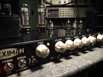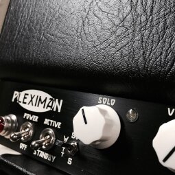 Baptisé Pleximan, l’ampli est entièrement à lampes et présente deux canaux avec des réglages de volume, gain, égalisation, ainsi qu’un Solo et différents switches pour offrir des capacités sonores supplémentaires.
