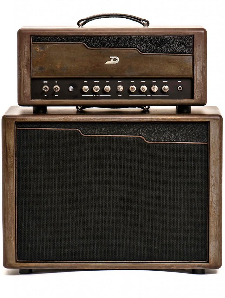 Le baffle 1×12” embarque un HP Celestion Alnico Gold de 8 Ohms supportant 50W de puissance. Sa structure est en multiplis de bouleau et a reçu la même finition métallisée vieillie que la tête.