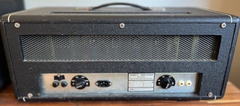 Publié le 03/04/11 à 15:16Mon exemplaire est une tête deux entrées datée du 10 novembre 1977. Comme dit précédemment, on a un volume par canal (normal et brillant), une égalisation 3 bandes et une présence. Deux sorties hp avec sélecteur 4/8/16 ohms. Câblé en point par point, il a été révisé il y a peu.Il dispose de 12ax7 et de El34 en puissance.