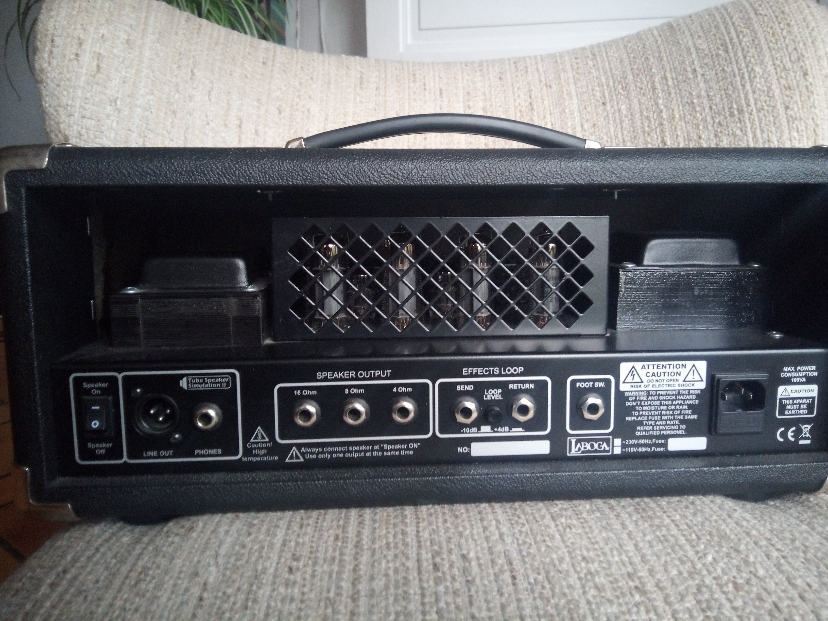 Tête lampes, 30w ou 15w, sortie 4 ohm/8 ohm/16 ohm, boucle d’effet… etc je vous laisse regarder sur le site de Laboga.