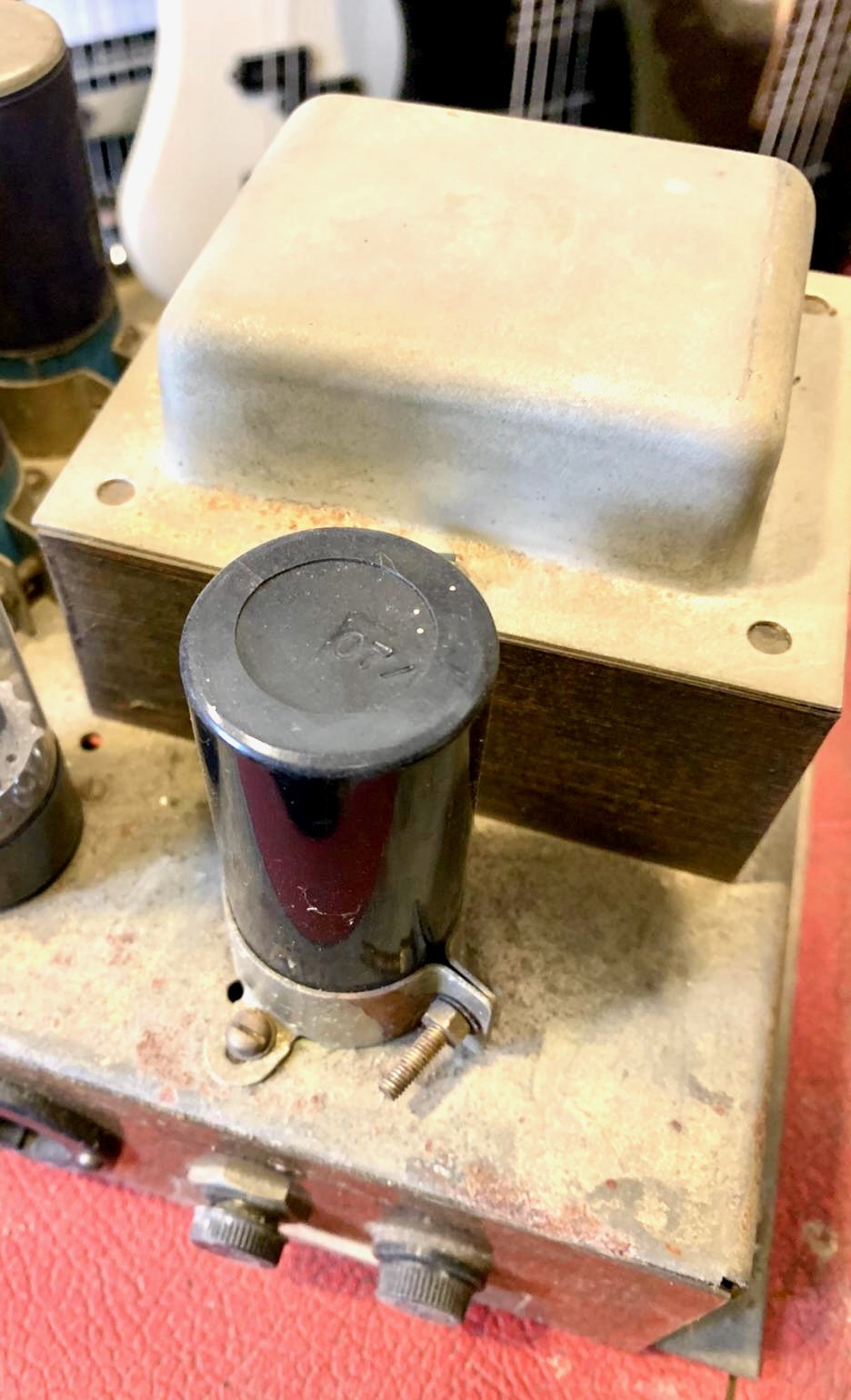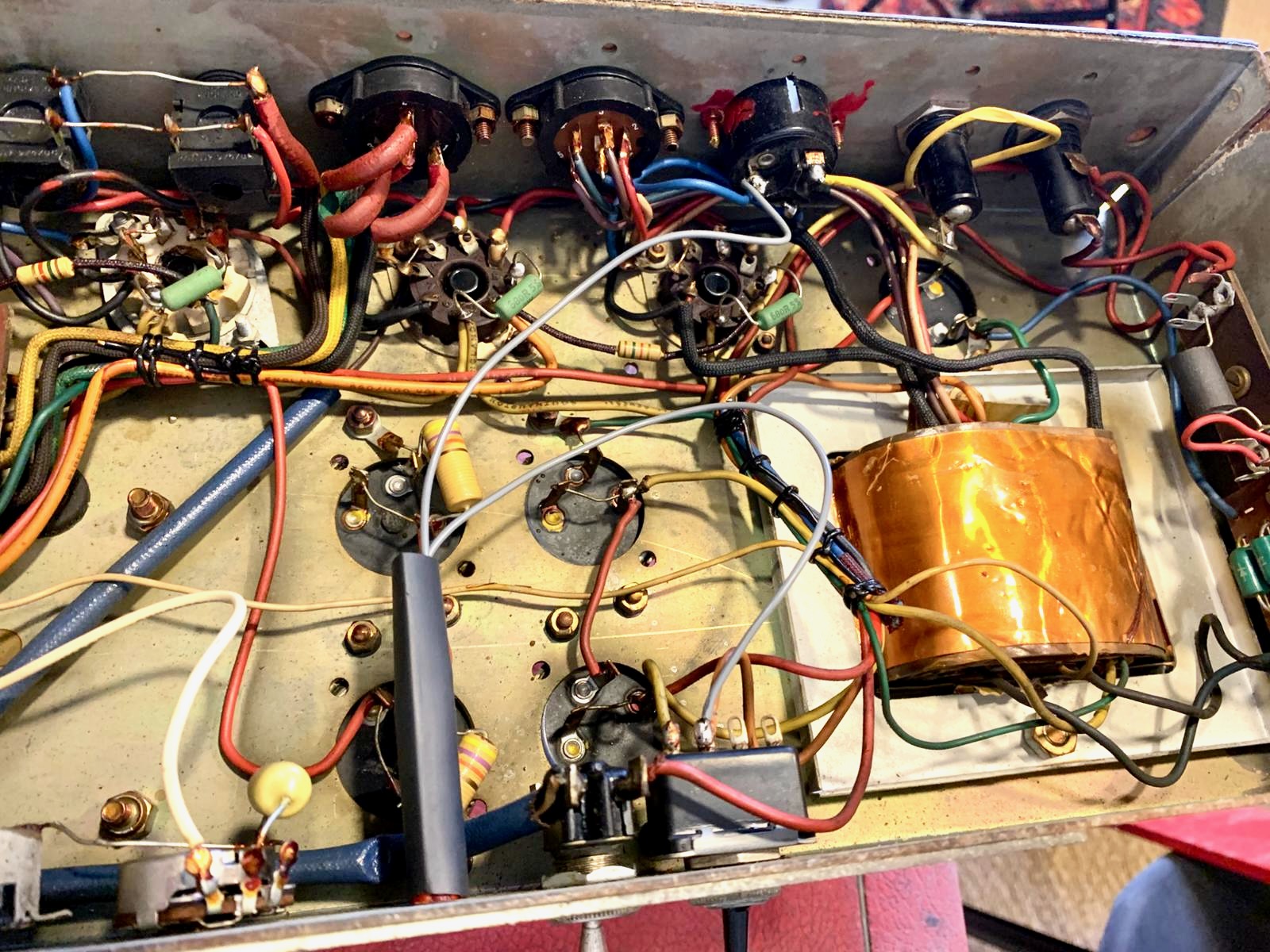 Un ensemble brut, sans master volume, qui excelle branché dans un bon 4x12... ou deux ! Superbe et très rare dans sa couleur Red. A l'approche de ses 60 ans, il a bien vécu mais fonctionne parfaitement, les lampes de puissance viennent d'être remplacées.