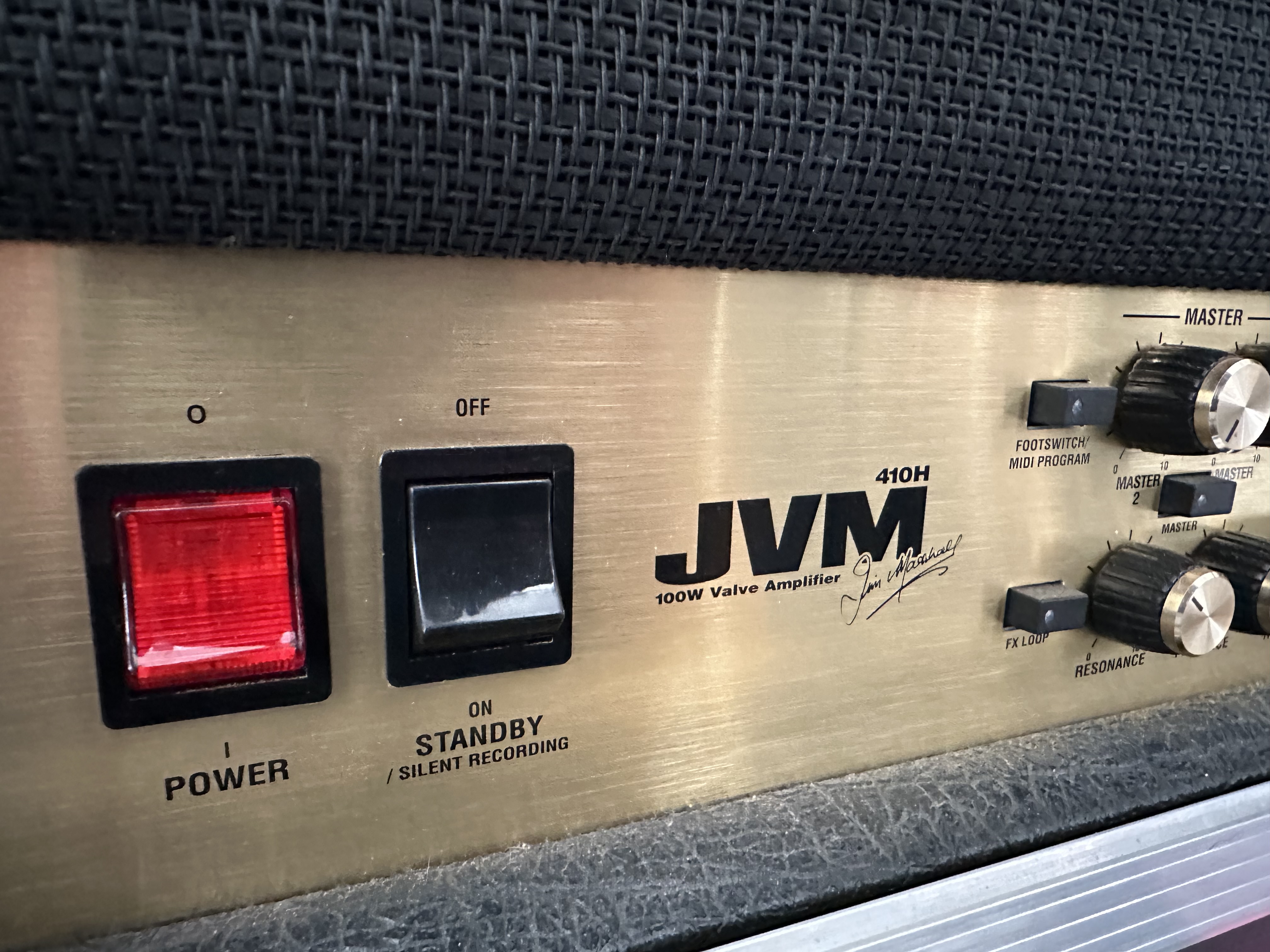Dans le but de financer un autre achat, je mets en vente ma tête Marshall JVM 410H avec son flight case fait sur mesure et son footswitch d'origine.