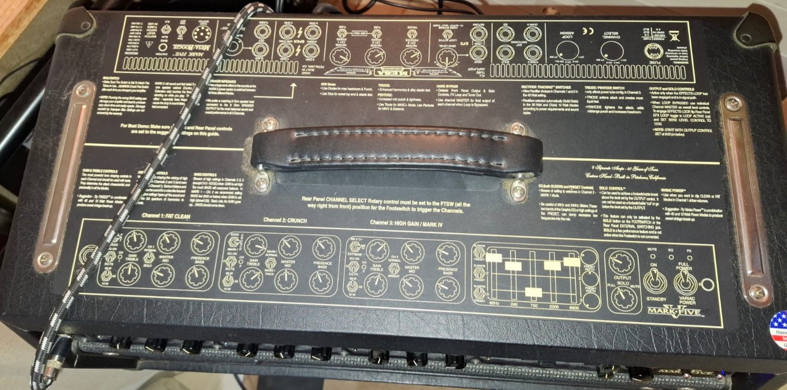 Mesa/Boogie Mark V – Tête 90 WTête d’ampli Mesa/Boogie Mark V 90 W, ampli tout lampes haut de gamme, reconnu pour sa polyvalence et sa dynamique.