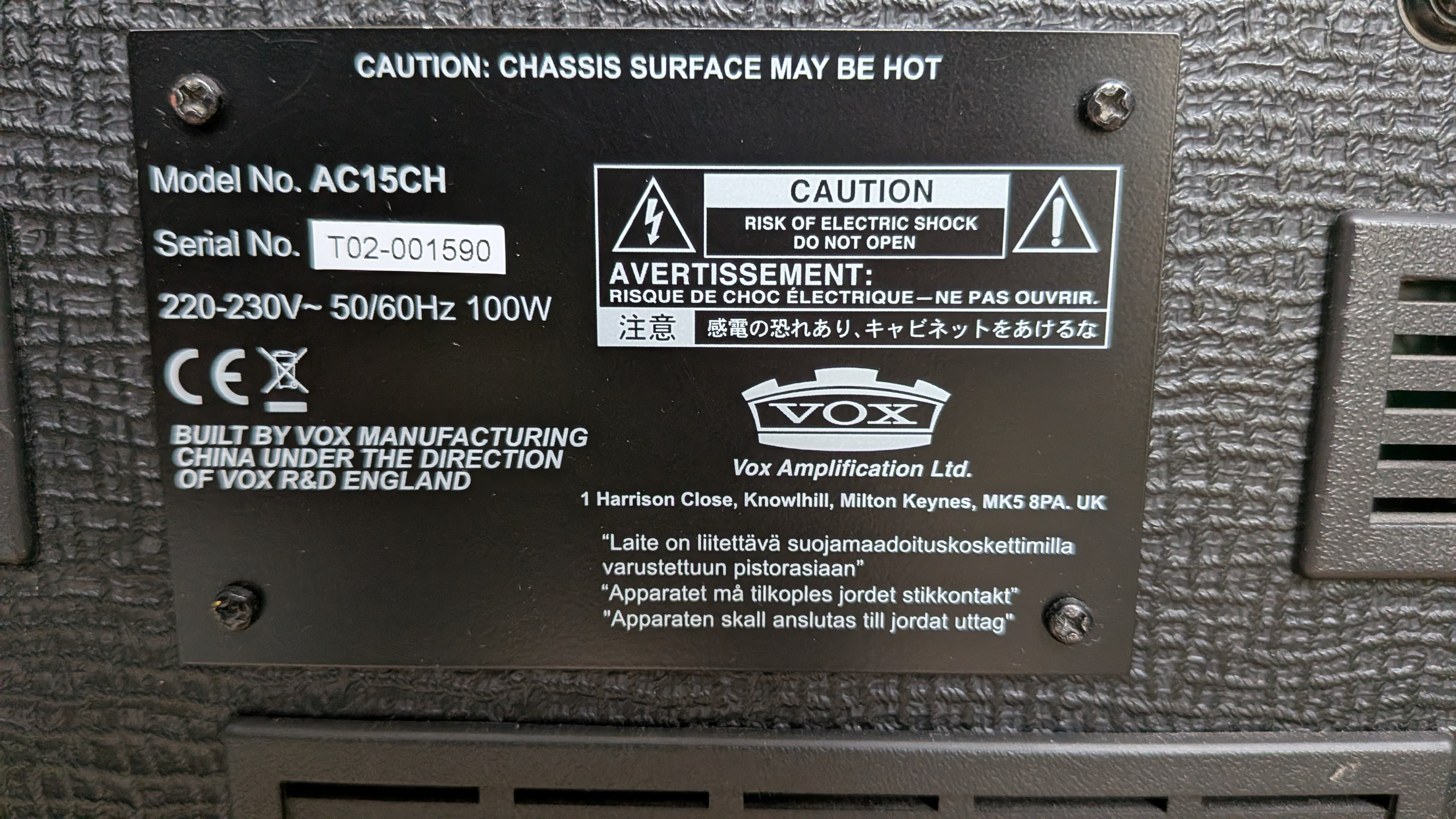Vends tête d'ampli guitare VOX AC15CH en très bon état.Lampes entièrement remplacées par des neuves, achetées chez Tube Town (revendeur de référence) : 2x EL84 en puissance, 3x 12AX7 en préampli.