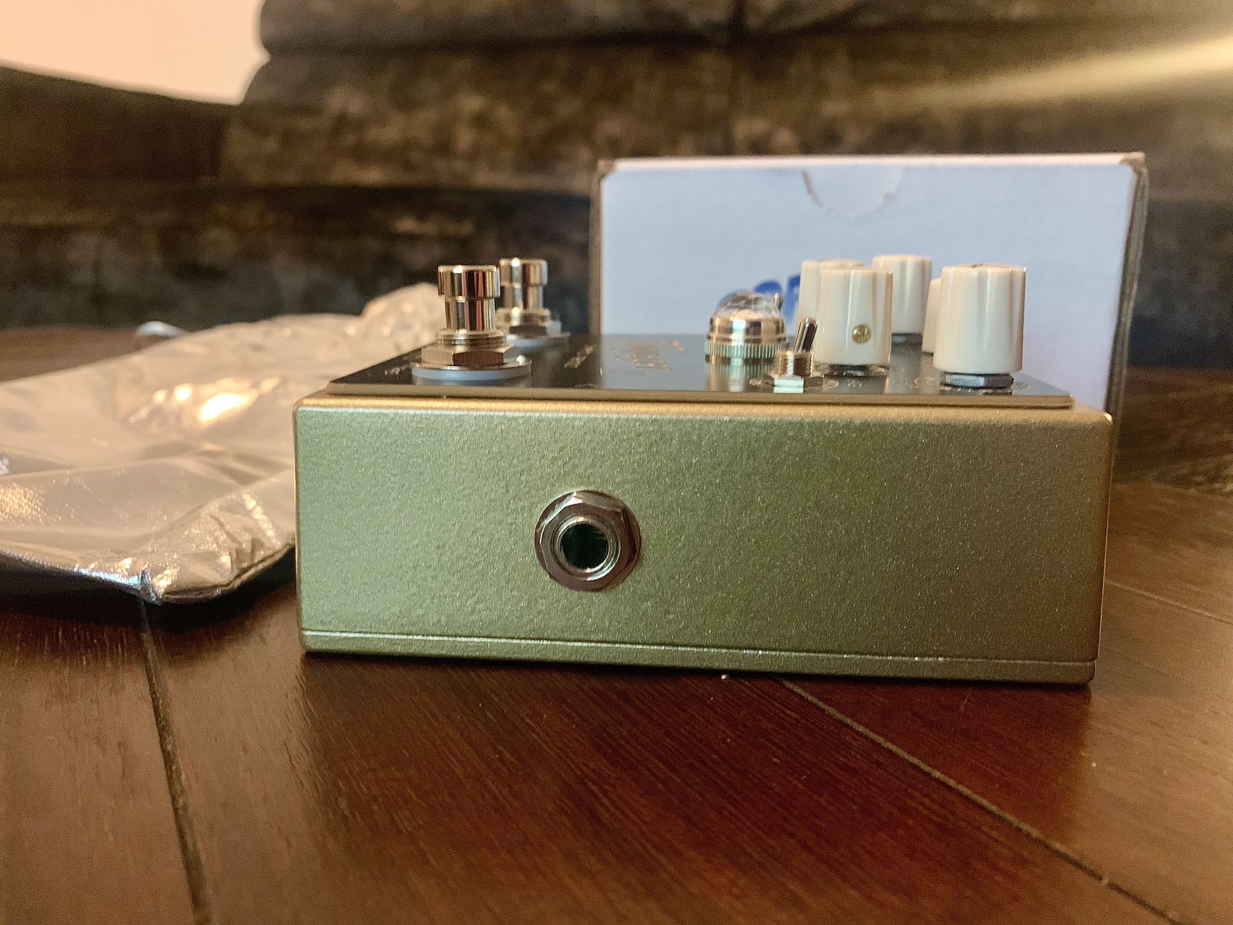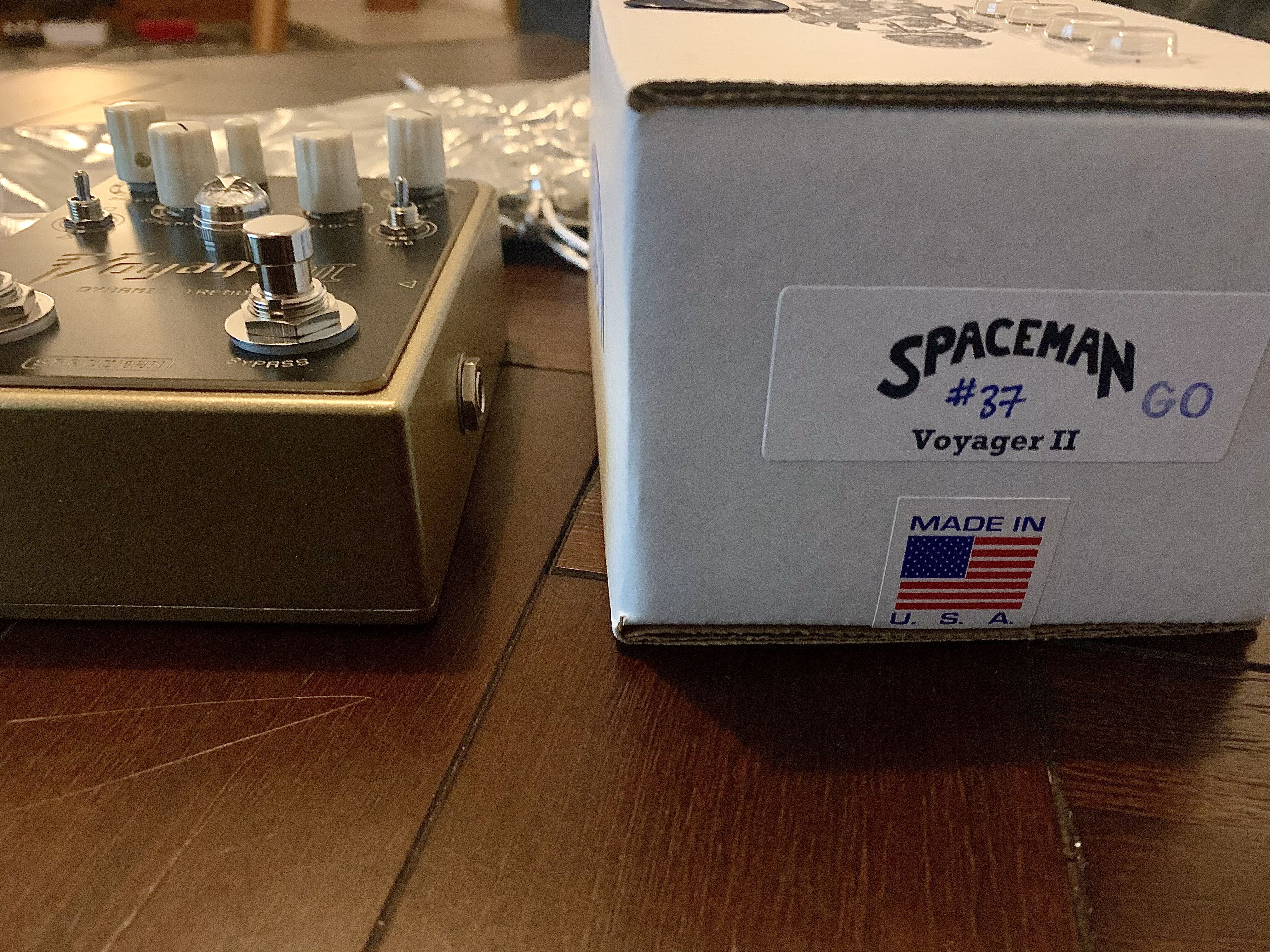 C’est une première main, elle est complètement neuve et fonctionne parfaitement, livrée avec le mediator Spaceman Effects, le petit sac de protection et la boite d'origine.