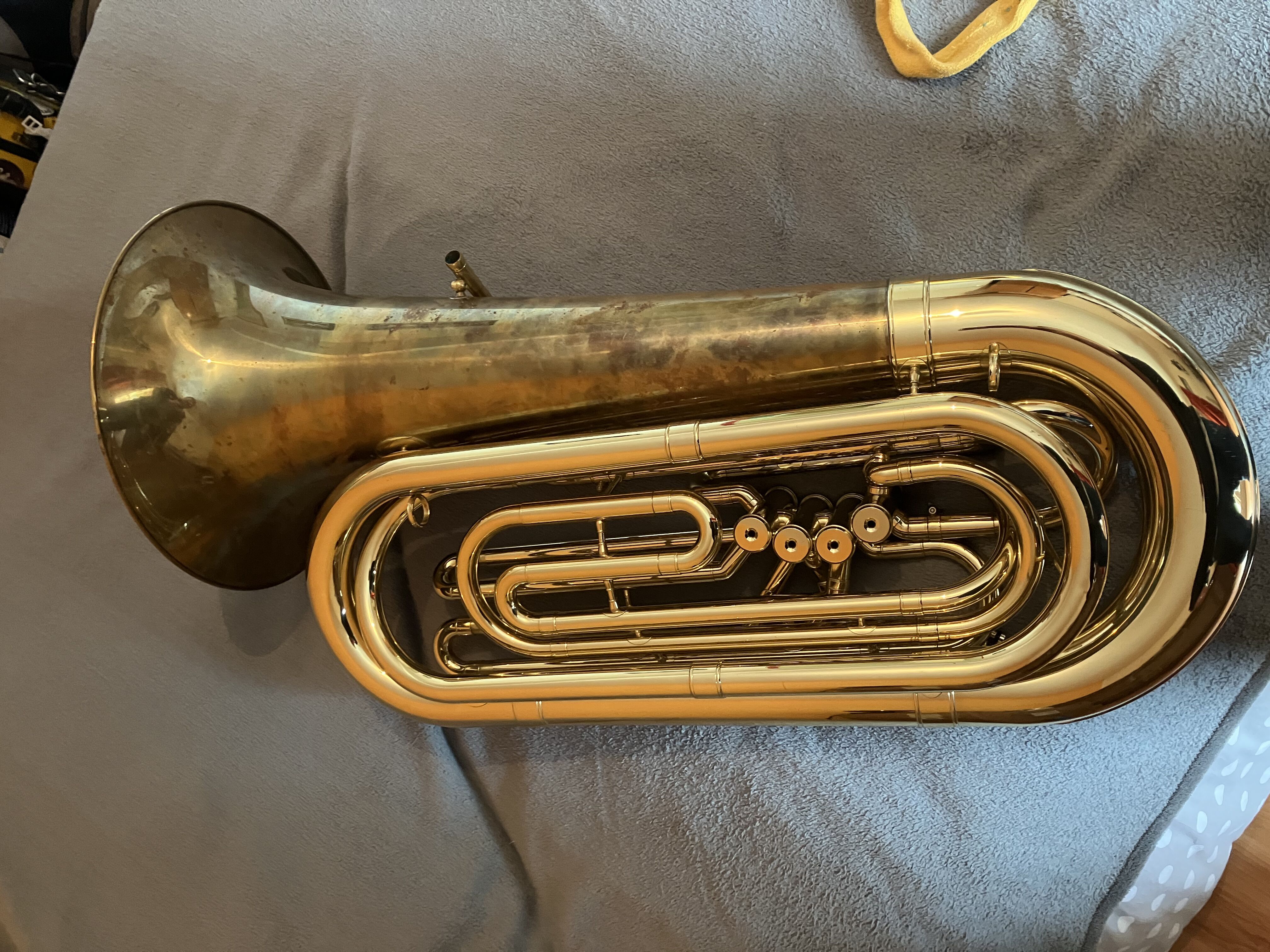 Quelques petits impacts sur le bas du tuba, voir photo.
