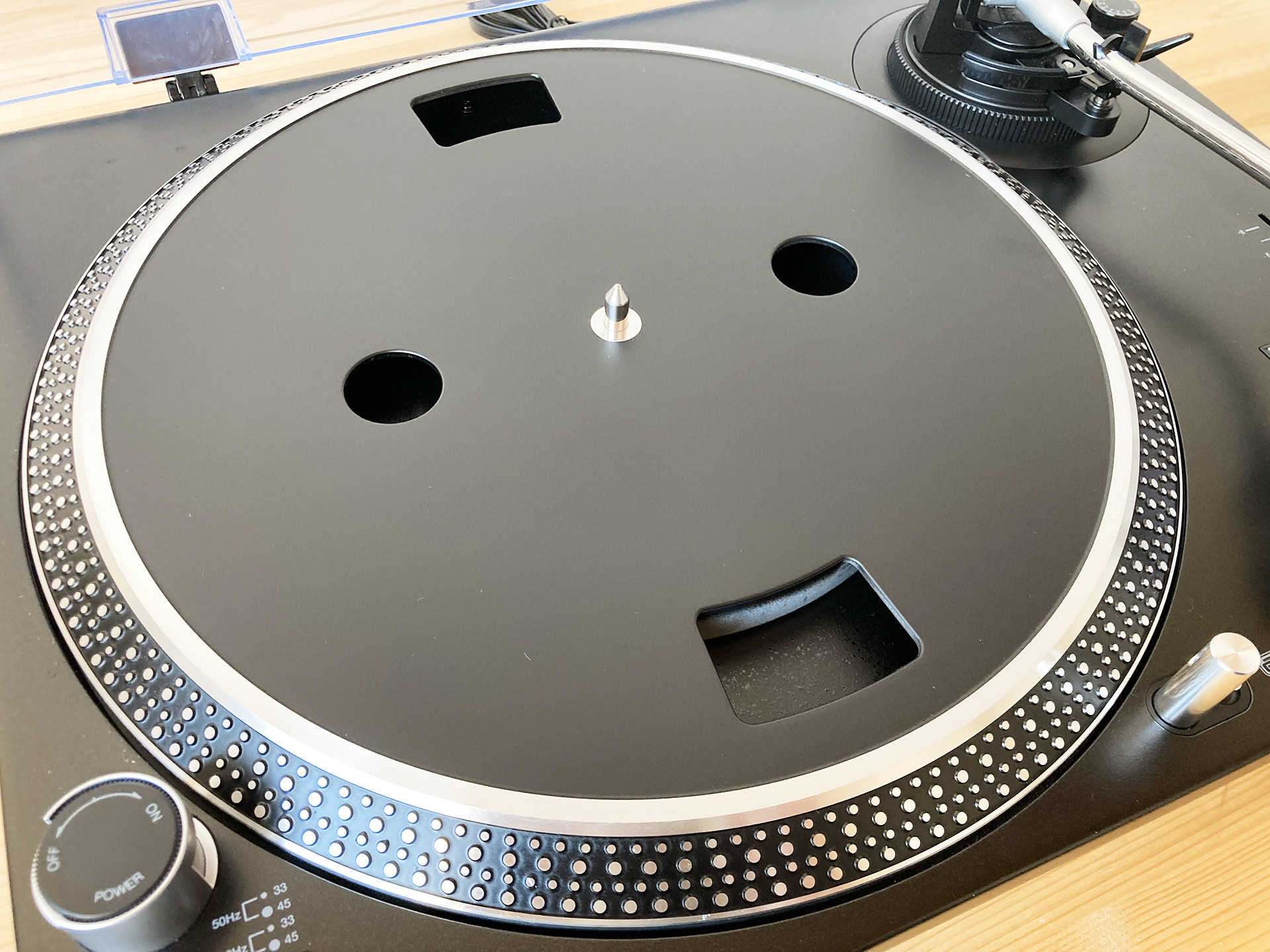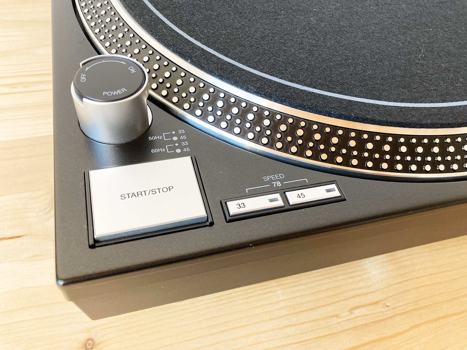 • Vitesses : 3 vitesses avec sélection manuelle (33 1/3, 45 et 78 tours/min)