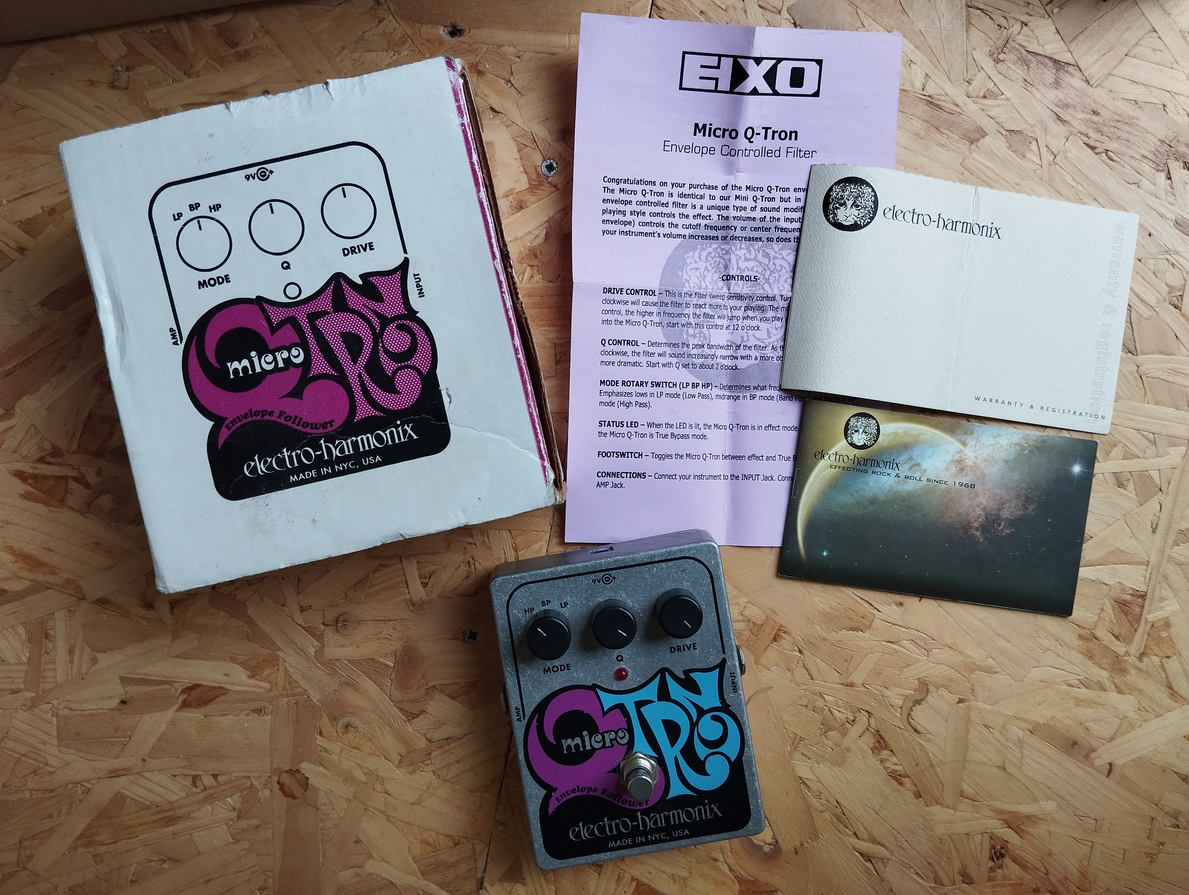 Je vends par exemple cette Micro Q-tron, ma toute première pédale achetée à Pigalle en 2008 (j'ai gardé la facture) (je suis vieux).