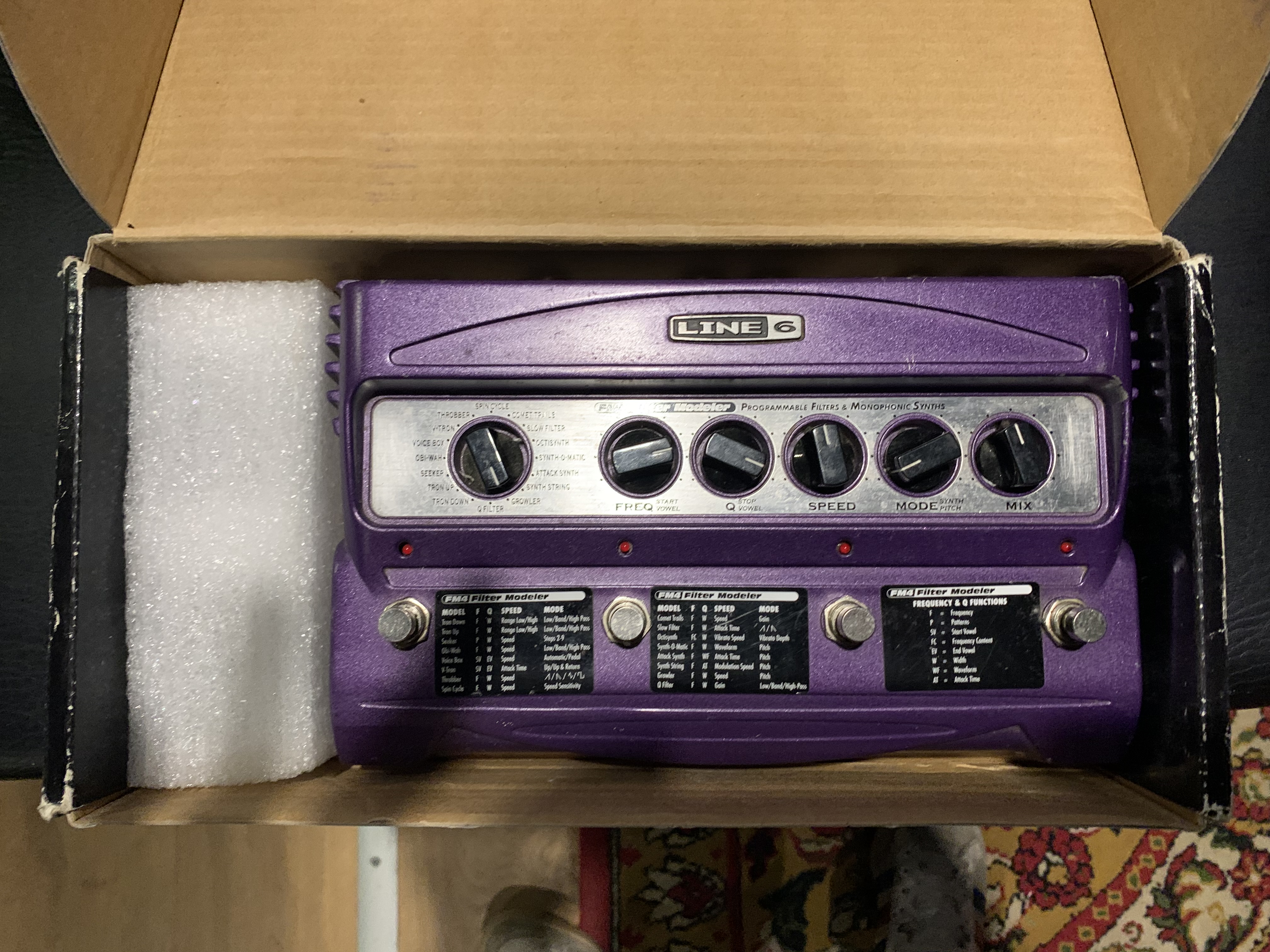 Je me sépare de mon Line 6 FM4, superbe pedale qui commence à être vintage et dont la cote va très certainement monter, pour les collectionneur.Elle fonctionne comme au premier jour et emule a merveille tout un tas de filtre notamment le mutron, des seek wha, des synth boss gs des filtre oberheim des gros synthe bref y’a de quoi faire.