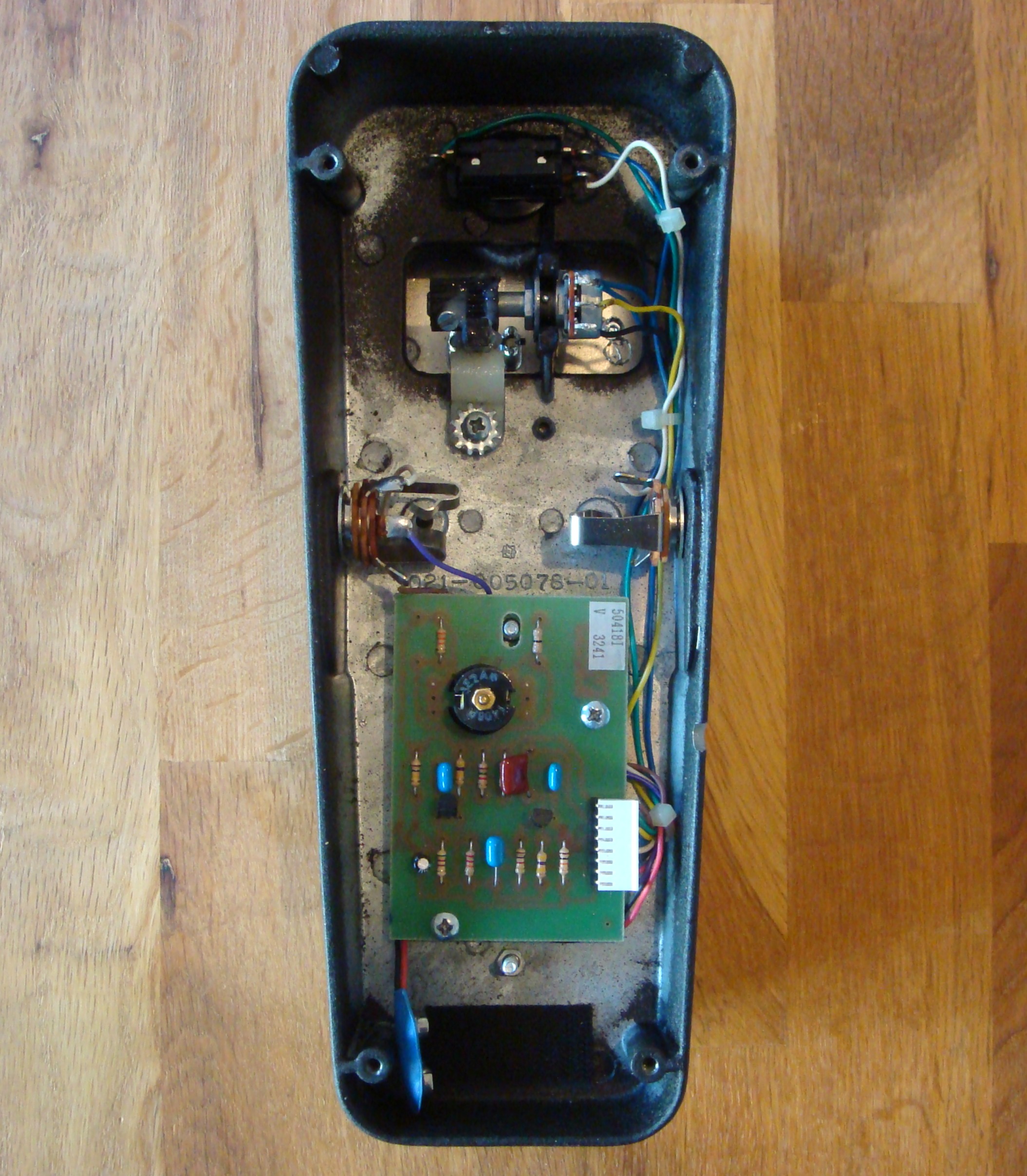 Cette pédale légendaire fonctionne parfaitement (alimentation uniquement par pile 9 Volts – consommation de 1 mA – mais un petit trou a été limé très proprement sur le côté gauche afin de faire passer un câble d'alimentation).