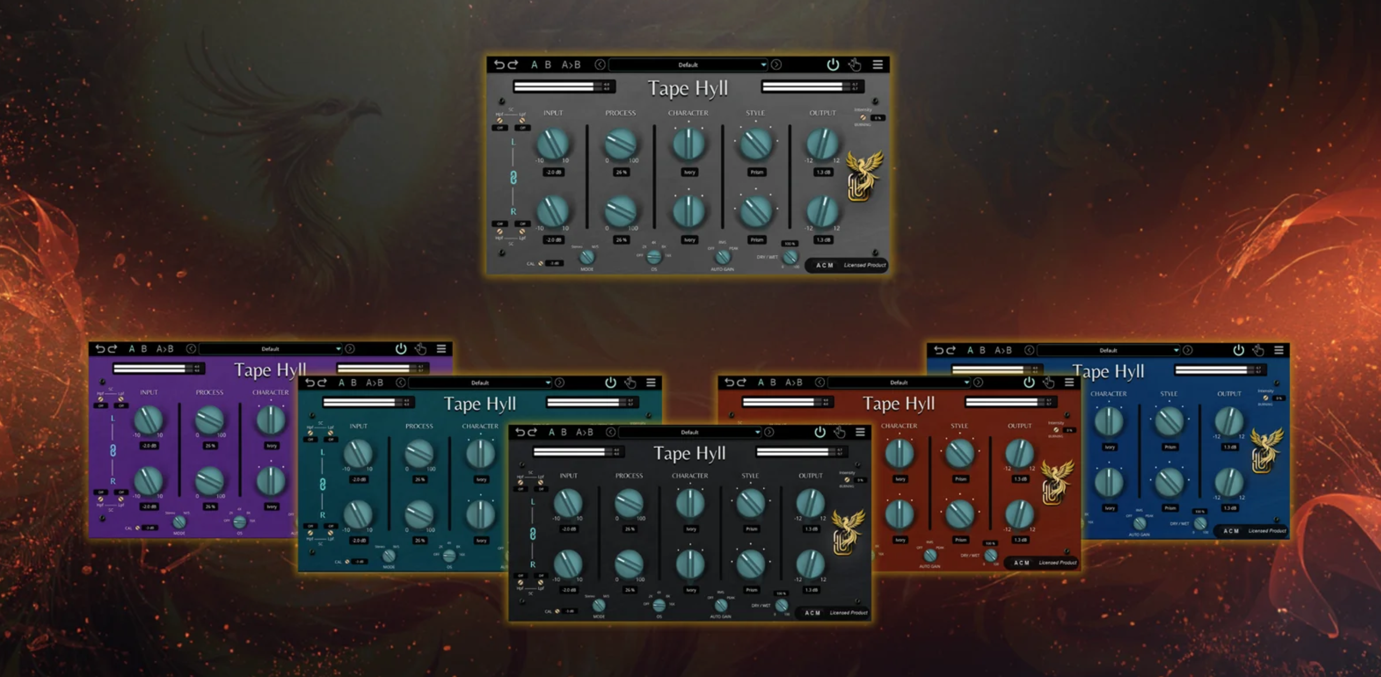Le plug-in propose cinq styles de saturation (Aura, Prism, Ember, Bloom et Velour) ainsi que trois profils tonaux (Ivory, Crystal et Amber), pour ajuster la couleur et la réponse du traitement. Parmi les fonctions intégrées figurent des filtres coupe-bas et coupe-haut placés dans le circuit de détection, un réglage de mix global (Dry/Wet) et deux algorithmes de compensation automatique de niveau (RMS et Peak). Le plug-in propose également un suréchantillonnage jusqu’à 16x. Pour finir, Tape Hyll intègre des modes Dual Mono, stéréo et mid/side, et dispose d’une interface redimensionnable.