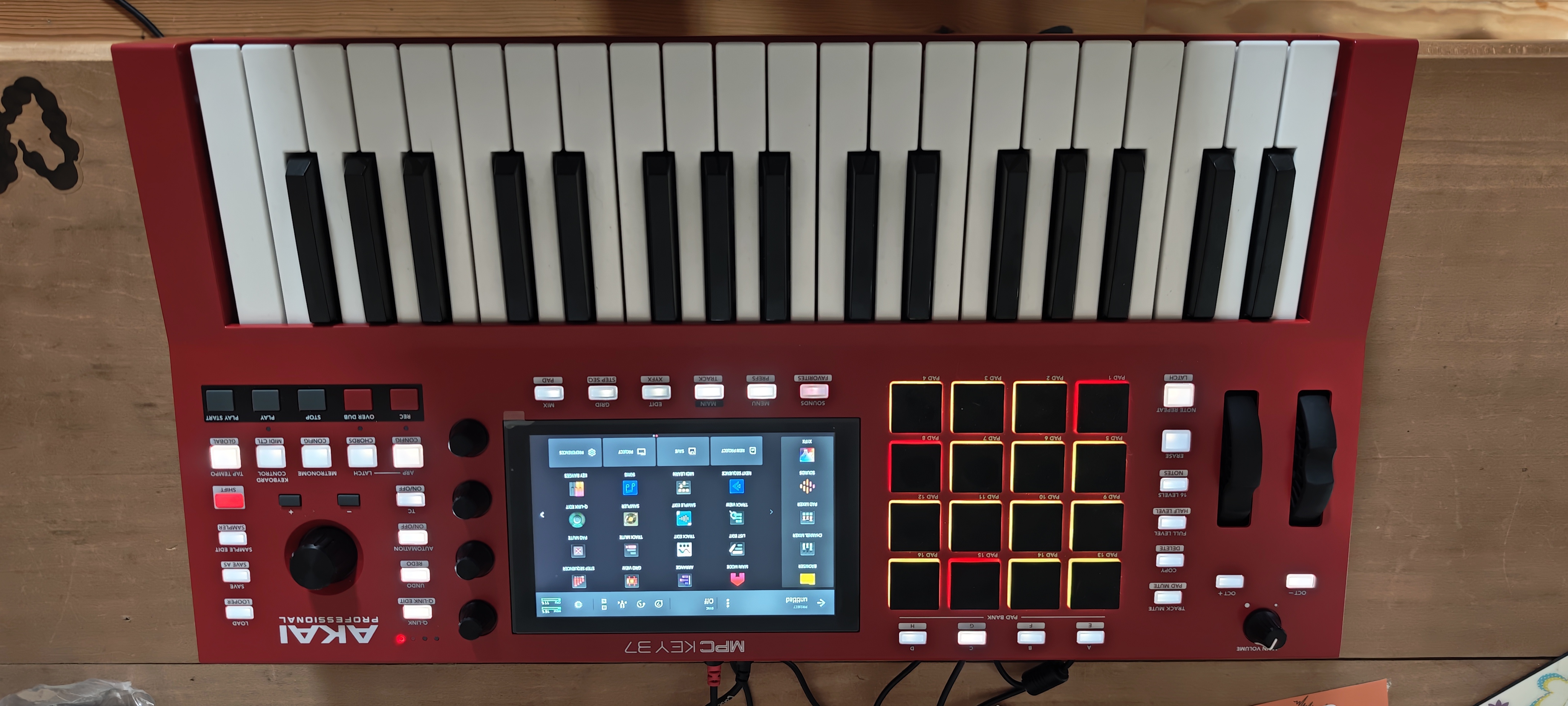 Concernant la taille, pour moi c'est parfait. J'ai déjà pas mal de claviers , donc ajouter une machine avec un "grand" clavier ne m'arrangeait pas du tout. Mais avoir un petit clavier, c'est très bien car cela transforme la machine en instrument de type "synthé". Attention, sans clavier, une MPC c'est tout de même un instrument de musique, car il y a les pads ! Grande découverte pour moi, les pads AKAI . Avant d'essayer , je considérais cela comme de vulgaires boutons de déclenchement. Mais non , pas du tout. Il s'agit d'un instrument a part entière. On s'éclate à jouer des parties rythmique, c'est vraiment inspirant. Il sont très sensibles , rapides, avec la détection de pression en plus.