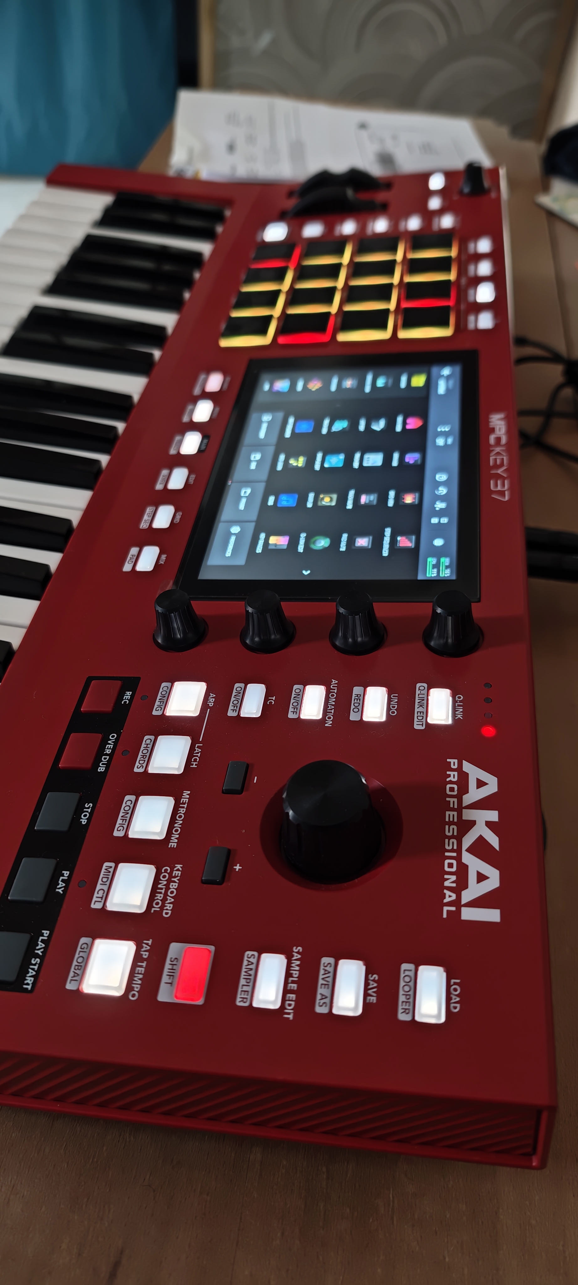 L'histoire avec cette machine commence en décembre dernier. Audiofanzine publie une vidéo des "Best-of" 2024, et dans cette vidéo, je découvre la MPC Key 37. Intéressé, je lis le test Audiofanzine, regarde des vidéos, et me décide assez rapidement d'acheter la machine. Le coté tout-en-un hardware/software me convient bien car je reconnais avoir du mal a m'impliquer avec les solutions uniquement software. J'utilise occasionnellement une version simplifiée de Cubase et aussi Live, mais l'interface sur PC ne me passionne pas. Là, je retrouve ce que j'aime sur les synthés : des commandes directes, des potentiomètres, un clavier, des molettes ...