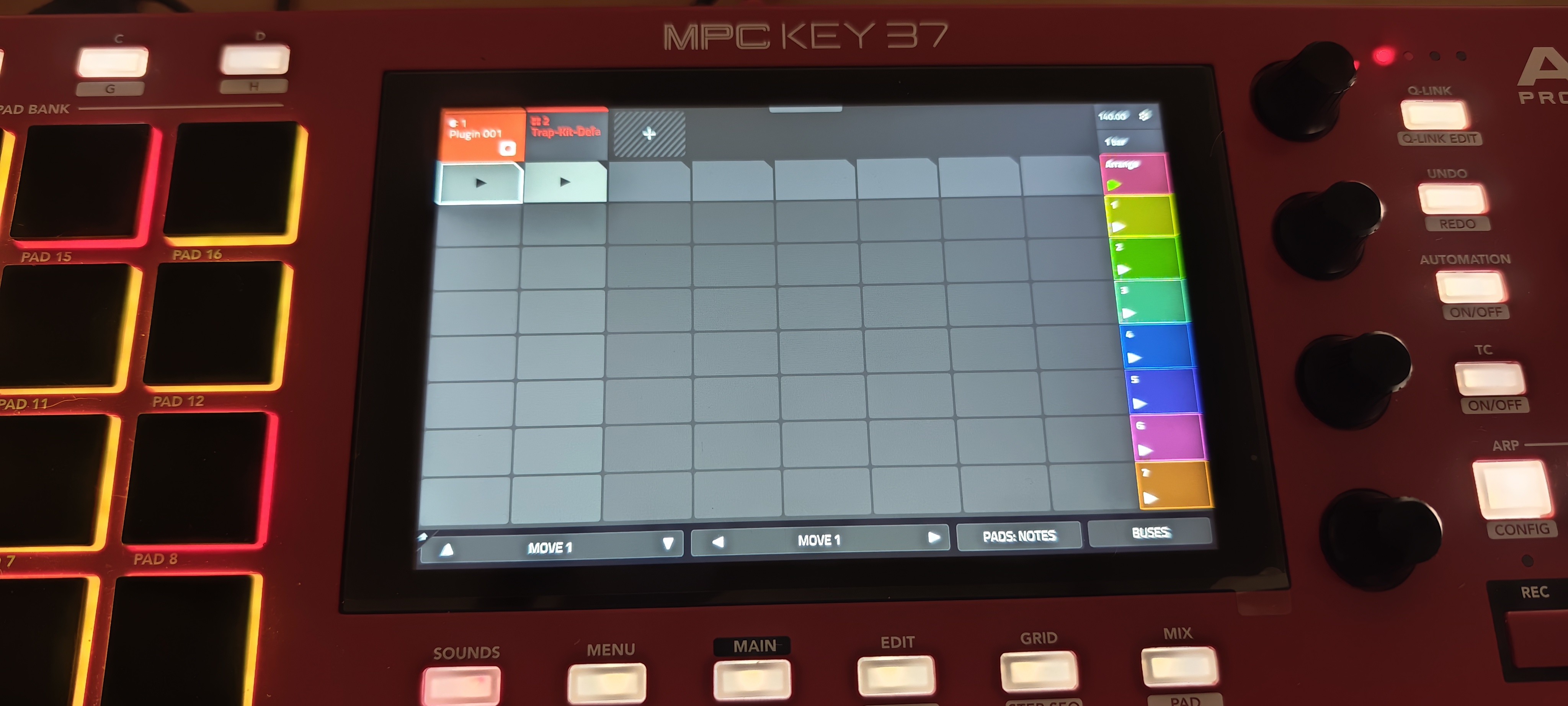 - à chaque fois que l'on joue le clavier, la banque de pads correspondantes s'affiche (chaque note étant reliée à un pad, comme pour toute MPC - ce qui est pratique d'ailleurs).
