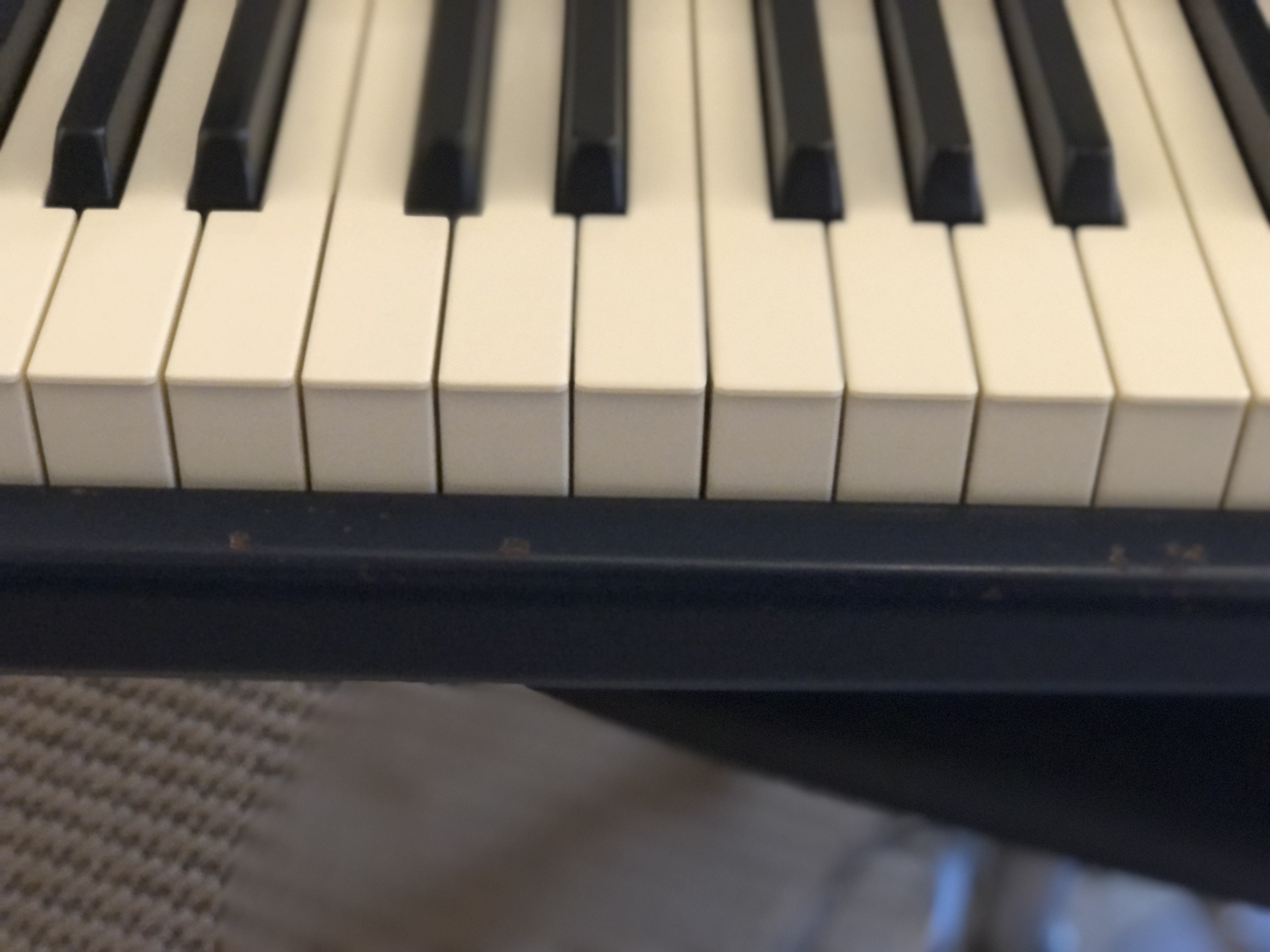 - la partie métallique de bordure bas de clavier à sa peinture écaillée et piquée à certains endroits.