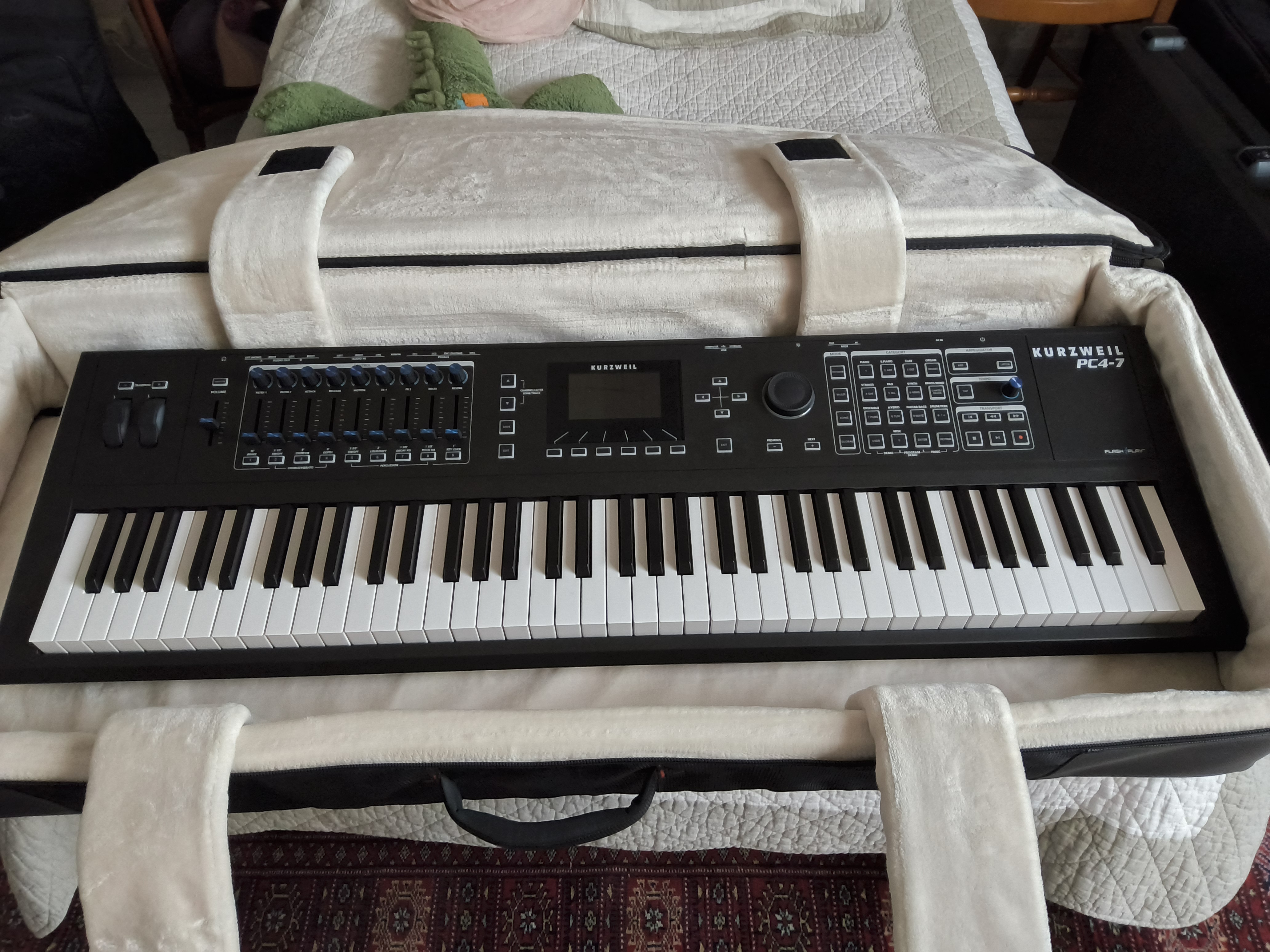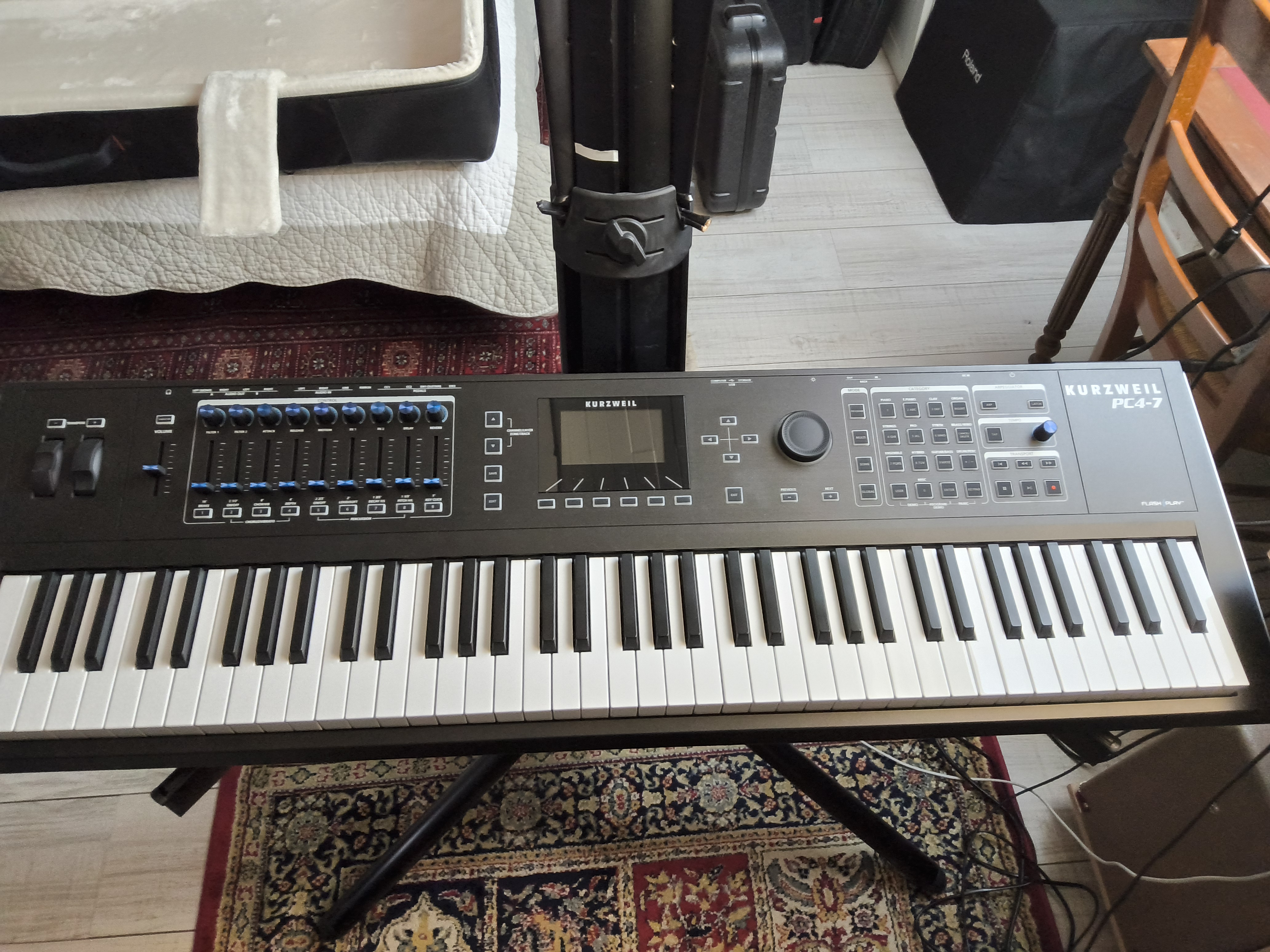 Vends Clavier Kurzweil PC 4-7 avec pédale Sustain et housse de transport capitonnée Gator pour clavier 76 touches le tout comme neufBanque Glam rock Soundcloud avec une centaines de sons supplémentaires incluses